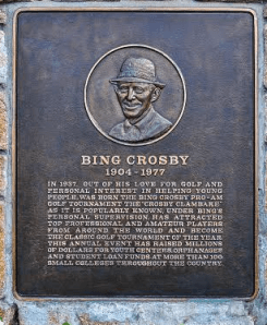 Pebble Beach, California, honors Crosby for the Bing Crosby Pro-Am Golf Tournament. The tournament raised millions for youth centers, orphanages, and college loan funds.