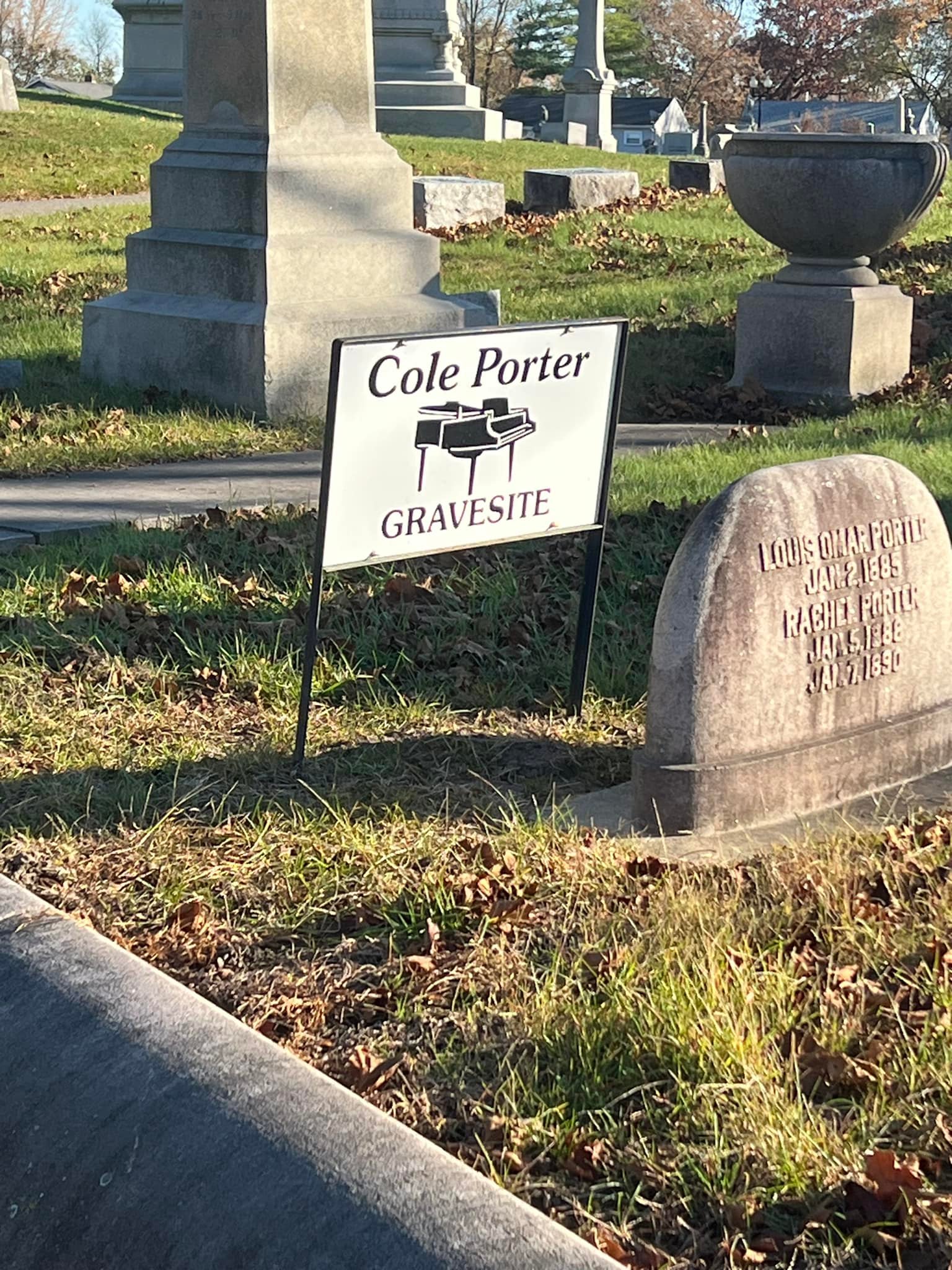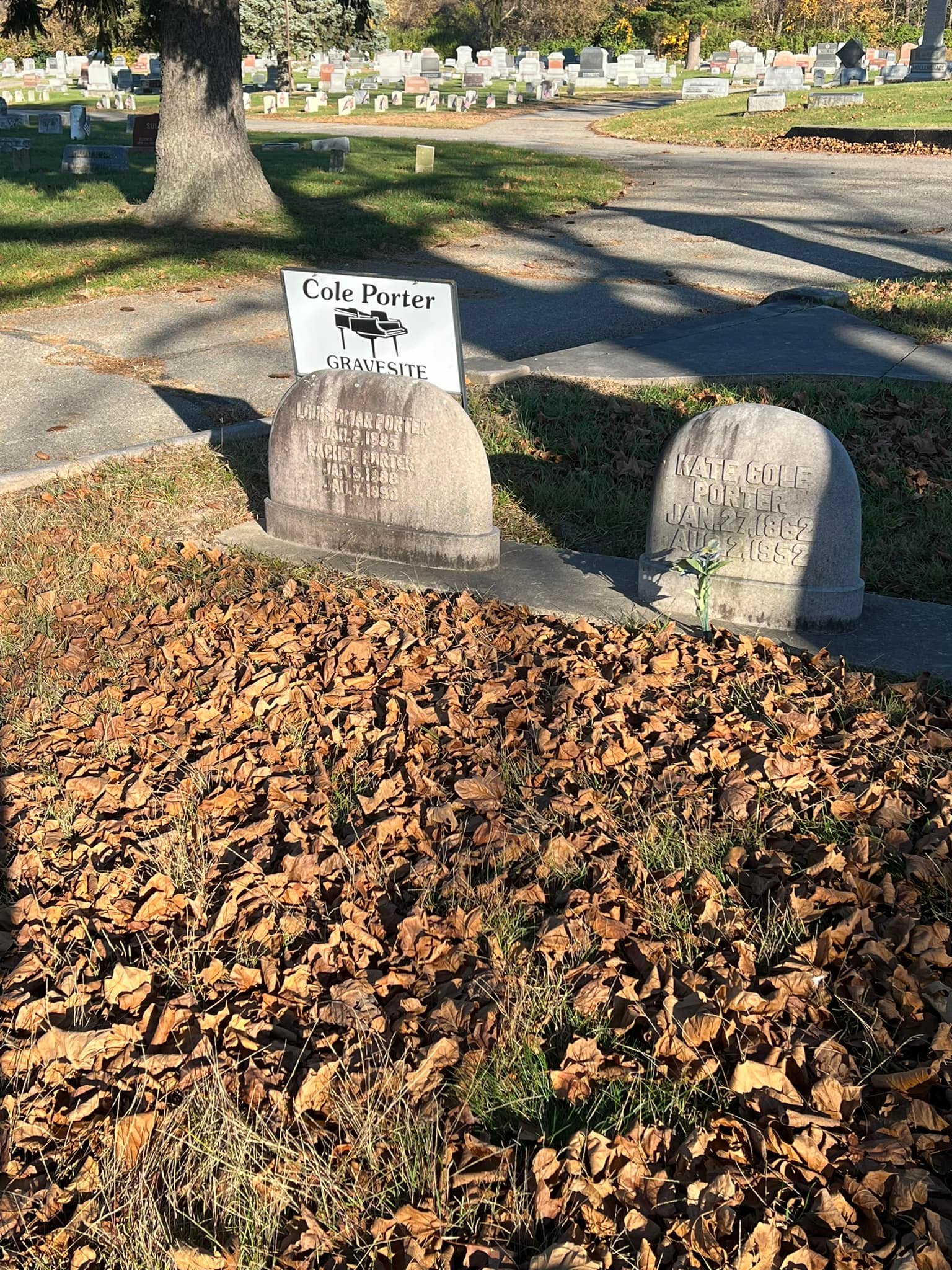 Afterward, according to McBrien, the Eikenberry Funeral Home in Peru received an odd call from Pierce Brothers Mortuary in California–“We congratulate you. You are receiving the body of Cole Porter.” Porter’s graveside service was brief, as intended, and Porter was buried between his father and wife. The service was conducted by the Paster of the First Baptist Church in Peru, in the presence of relatives and friends. Per Porter’s request, a simple reading from the Gospel of John was recited: “I am the resurrection and the life; he that believeth in me, though he be dead, yet shall live; and whosoever liveth and believeth in me shall never die,” along with the Lord’s Prayer.