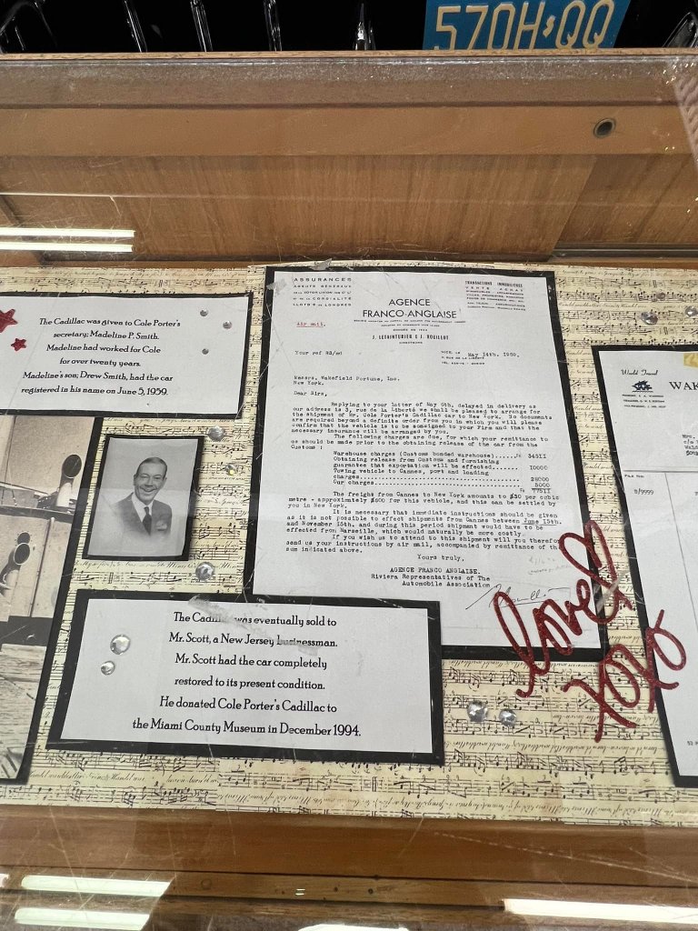 Best of all, the staff at the Miami County Museum are brimming with knowledge about Porter. The Museum contains the Cole Porter Archives for the Midwest. Researchers are welcome to come in and examine items, correspondence, photos, etc., relating to Porter’s phenomenal career. Archivist Shirley was incredibly helpful in sharing the collection with me and even brought out a HUGE family tree for Porter.