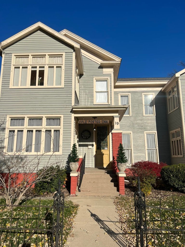 Today, the current owner of the property is the Chairman of Peru’s Cole Porter Festival, John Kirk. Part of the restoration of the home included transforming the home into a historic inn. There is a communal gathering space named, “Kate’s Parlor,” as well as three gorgeous bedroom suites: the “Anything Goes” suite, the “Night and Day” suite, and the “Cole Porter” suite. One look at the exterior of the lovely Cole Porter Inn shows that it is now, finally, back in good hands.