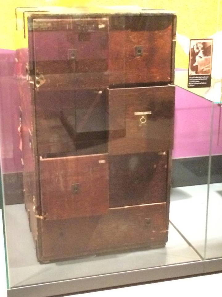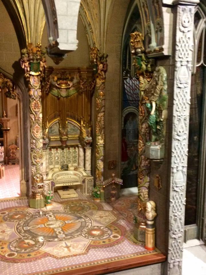 The Small Hall links the Library and the Chapel, with a mural portraying Noah relaxing after bringing the ark to land. The Chapel features designs inspired by the Book of Kells and possesses an ivory floor. Stained glass windows, a gold altar, and a miniaturized silver throne modeled after the throne at Westminster Abbey all decorate the Chapel. Handwritten musical manuscripts from Stravinsky to Gershwin are piled near a beautiful organ with gold pipes, not far from a Russian icon detailed with emeralds and diamonds from a broach Moore purchased. A vigil light showcases a diamond from Moore’s mother’s engagement ring. Moore’s parents also gave her a small vial containing a crucifix that is over 300 years old. Playwright and congresswoman Clare Booth Luce gave Moore a gold medallion with a sliver believed to be from the true cross. A stained glass screen also stands in the Chapel, taken from Lambeth’s Palace after a World War II bombing raid.