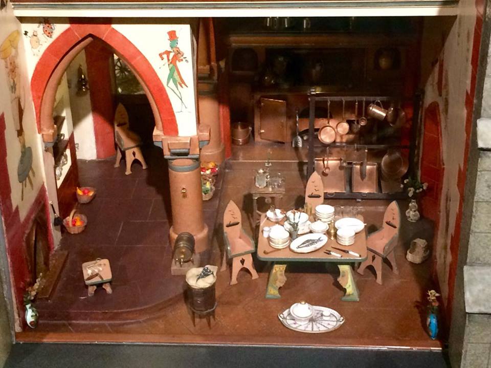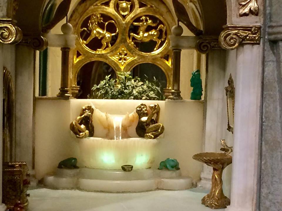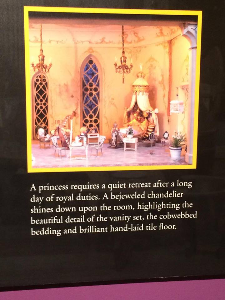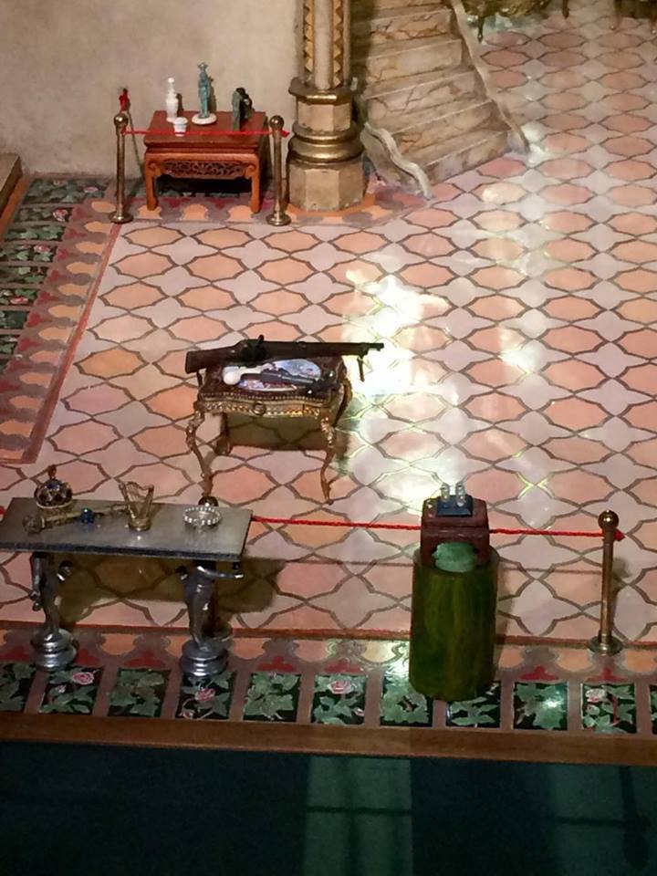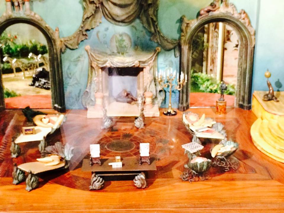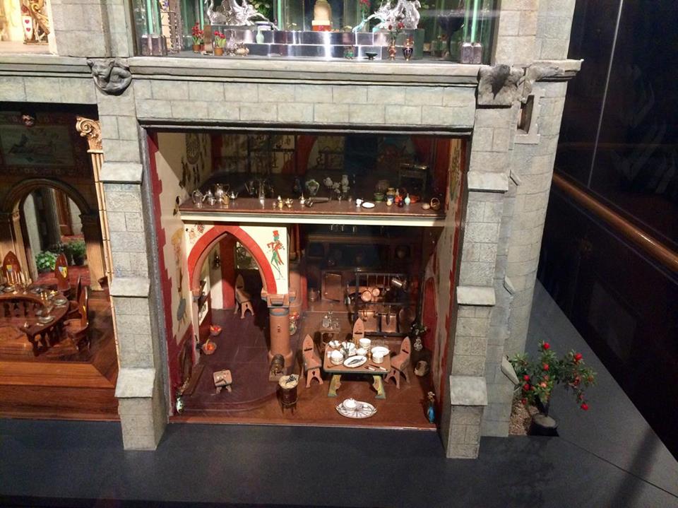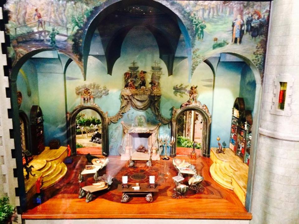 The Colleen Moore Dollhouse or “Fairy Castle” possesses thirteen key rooms, including: the Magic Garden, Library, Small Hall, Chapel, Great Hall, Drawing Room, Dining Room, and Kitchen on the first floor; Ali Baba’s cave, the Prince’s Bedroom, the Princess’ Bedroom, and Royal Bathrooms on the second floor; and an Attic on the third floor. None of the rooms have actual dolls in them; visitors are to imagine their own fantasy residents.