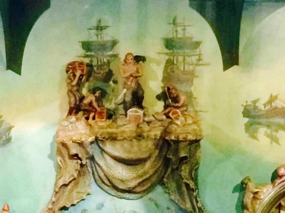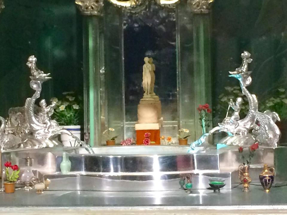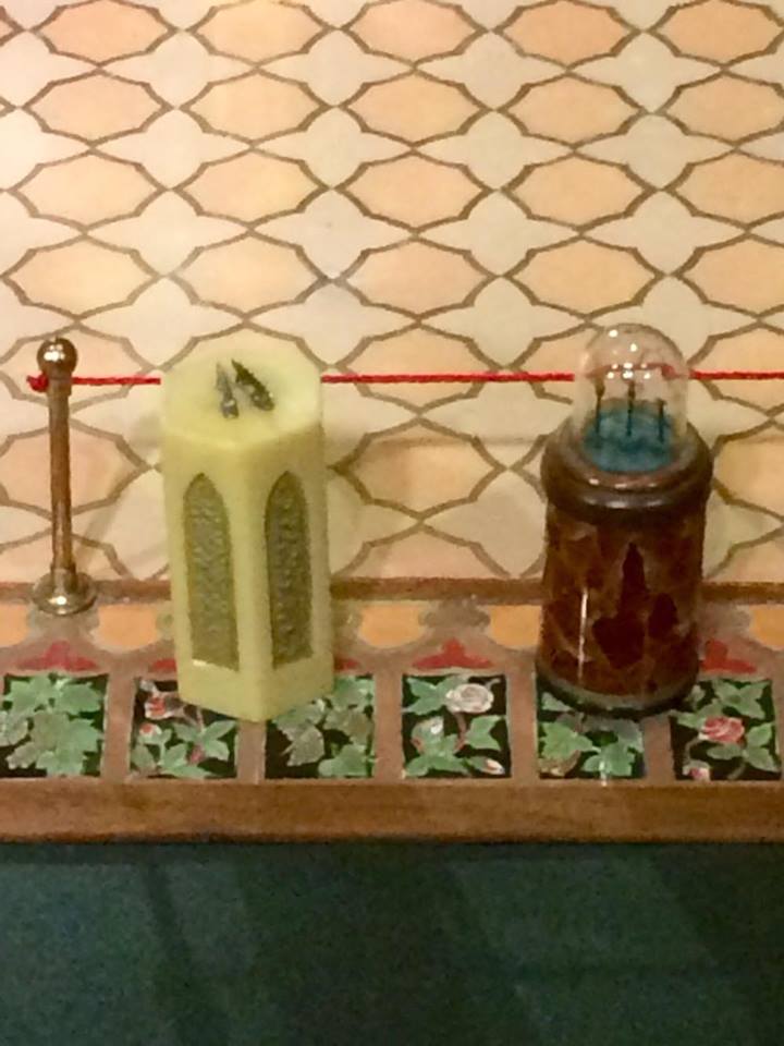 Moore’s house becomes all the more fantastic as visitors examine the upper levels. Ali Baba’s Cave boasts gems from Moore’s collection, while the nearby royal bedrooms complete the fairytale theme. There is a bedroom for the Prince, and one for the Princess, each equally ornate. The Prince’s Bedroom contains a polar bear rug, which was fashioned by a taxidermist out of ermine and the vicious teeth of a mouse. The Princess’ Bedroom houses a collection of Bristol glass, with many pieces having been contributed to Moore by strangers. The Royal Bedrooms are near the Royal Bathrooms, decorated in alabaster and diamonds. The silver spigots are functional and produce a fine stream of water. Extra furniture is situated in the Attic to avoid clutter in the main rooms.
