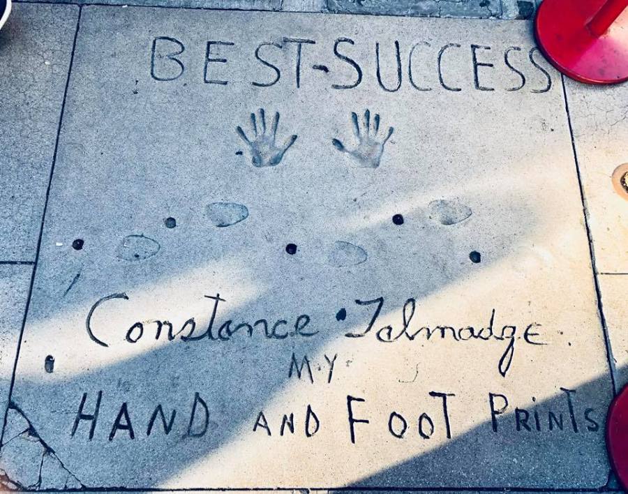 Norma Talmadge with Sid Grauman (above) leaving the very first foot and handprints on cement