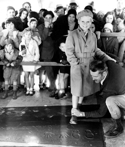 Child actor Jackie Cooper makes an imprint of his hands and feet in cement during induction ceremonies in the forecourt of Grauman’s theater on Hollywood Boulevard, Ca., on Dec. 12, 1931. (AP Photo)
