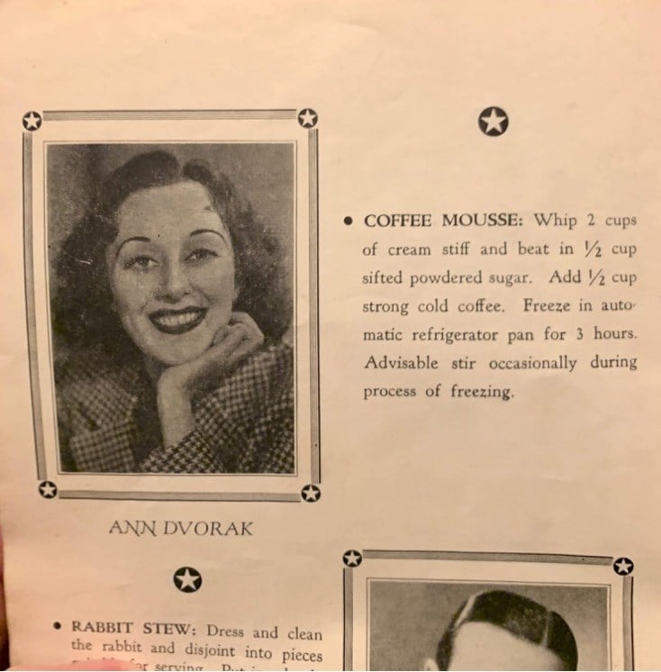 Karie: It depends. I’m assuming that many of these stars didn’t have the time to cook, given that they worked very long hours six days a week. I have a lot of movie star cook books from the 1930s and 40s and, in many cases, the recipes are repeated in several different books and given to different stars. I sometimes wonder if these recipes were from the studio publicists or the people who actually cooked for the stars.