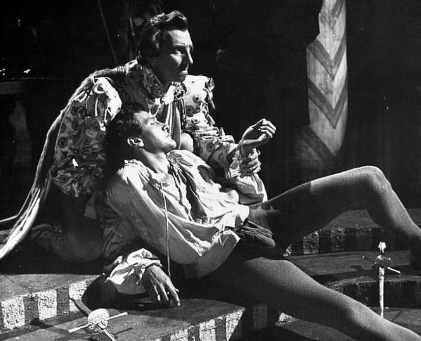 In 1947, Cushing worked with Laurence Olivier in Hamlet (1947), carrying out the role of Osric with much critical praise. Cushing and his wife, Helen, were invited to be part of Olivier’s repertory company, taking them on tour as part of various Shakespeare performances.