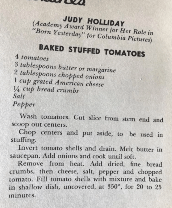 When Hollywood Kitchen announced that they were recreating Judy Holliday’s stuffed tomatoes, I definitely wanted to cook along with Karie Bible and her guests!
