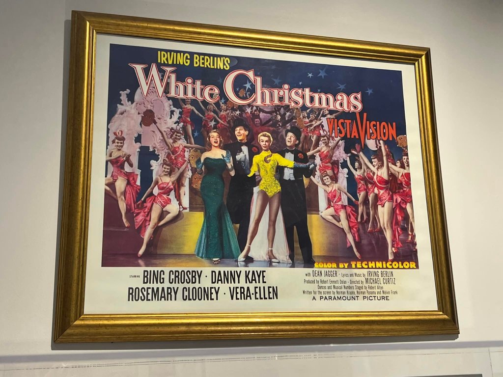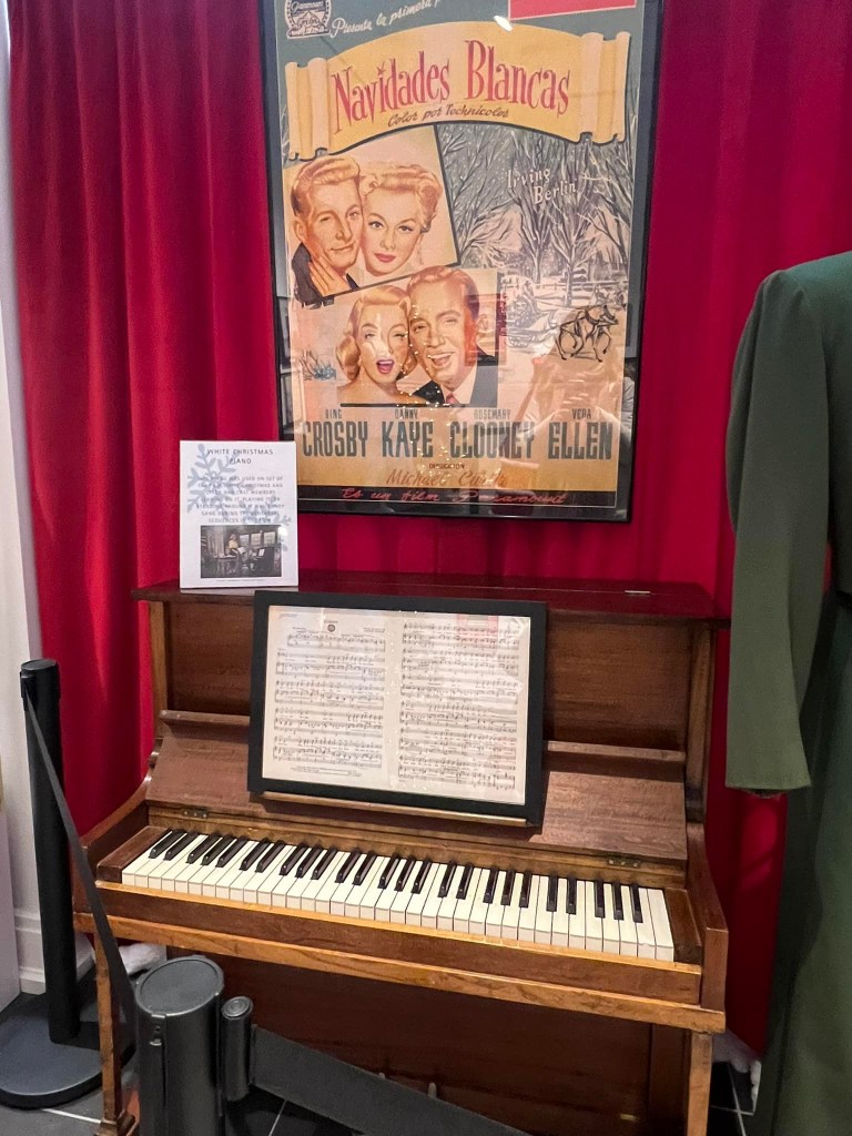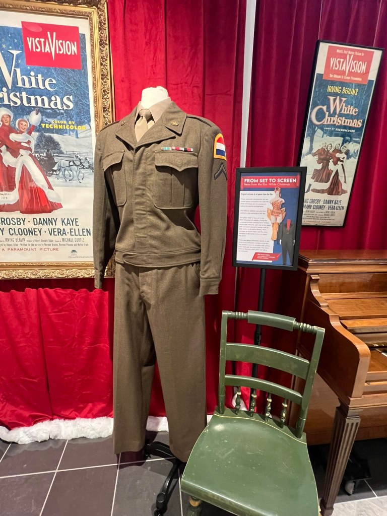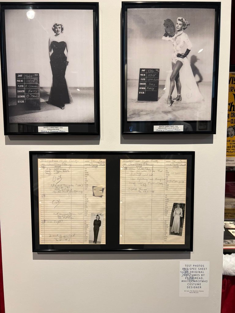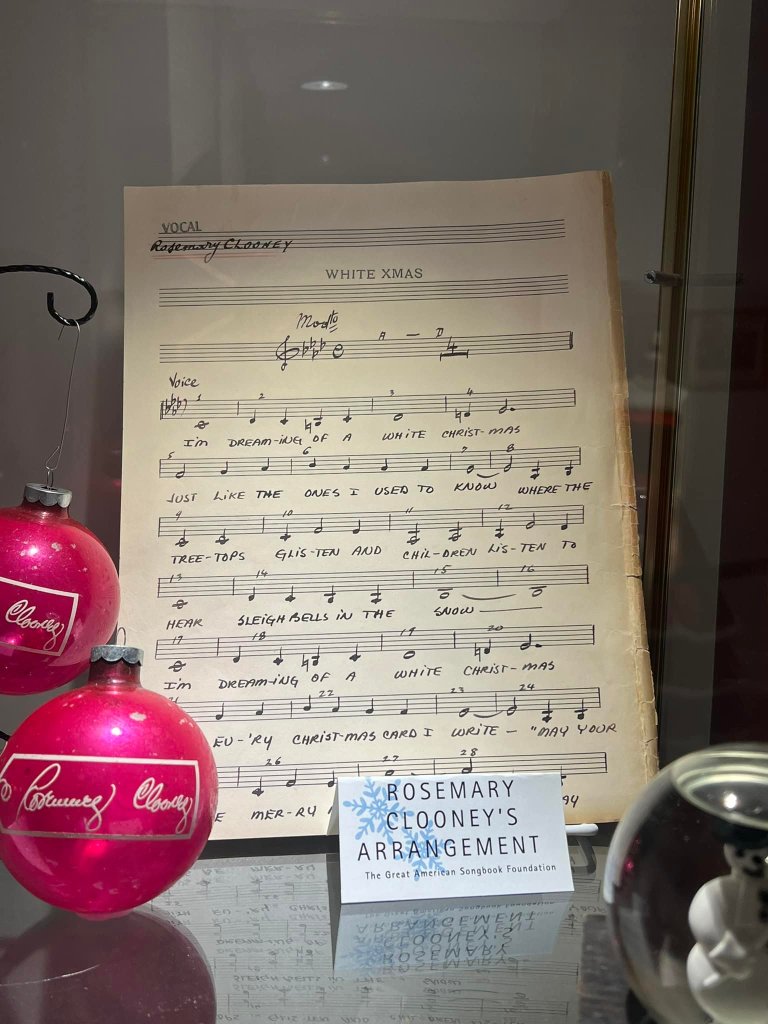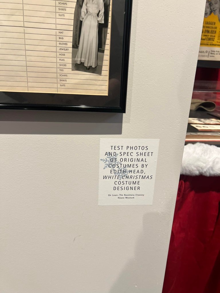 The Great American Songbook Foundation in Carmel, Indiana, is a wonderful resource to fans of the Great American Songbook and Golden Age Cinema. They have so many fascinating pieces in their collection–courtesy of their founder, Michael Feinstein–and provide quality educational programming on the subject. They maintain an exhibition space in the Allied Solutions Center for the Performing Arts and have plans to build a standalone museum in the future. In December 2025, they dedicated their exhibition space to White Christmas (1954), showcasing select items from both their collection and the Rosemary Clooney House Collection. I am delighted to share photos from my time visiting the collection and to highlight some of my favorite pieces.