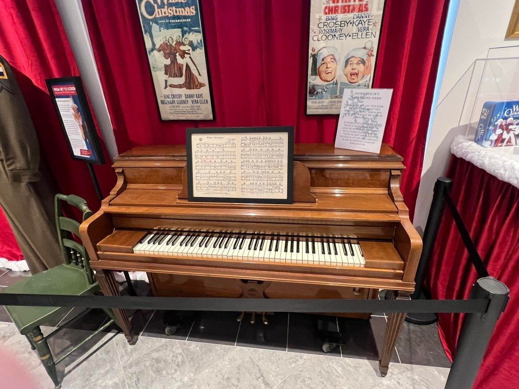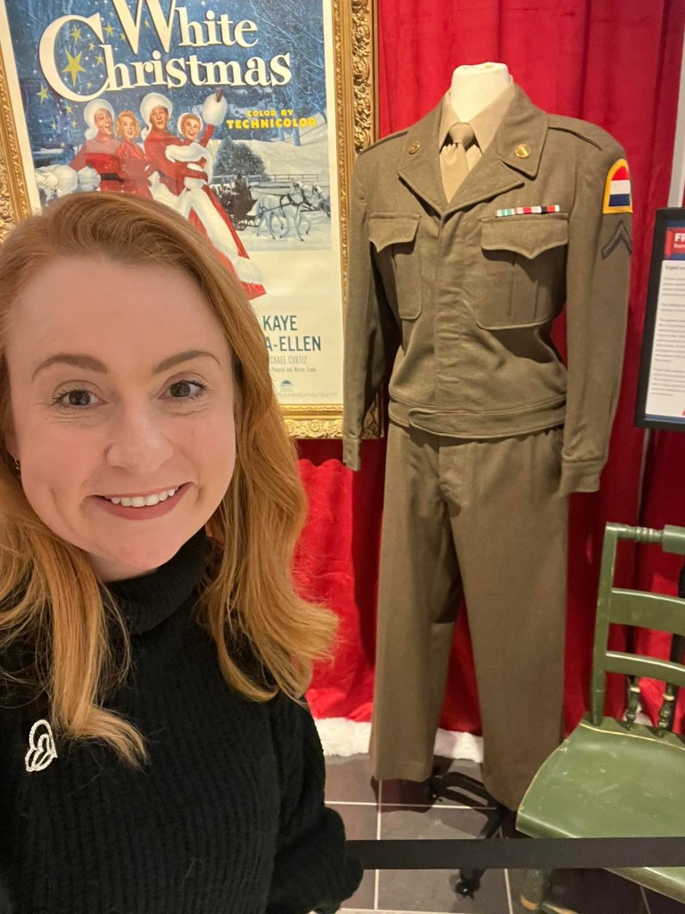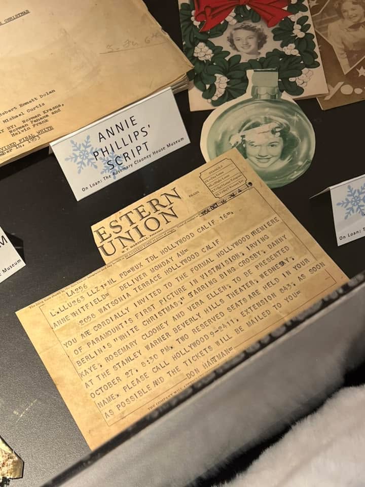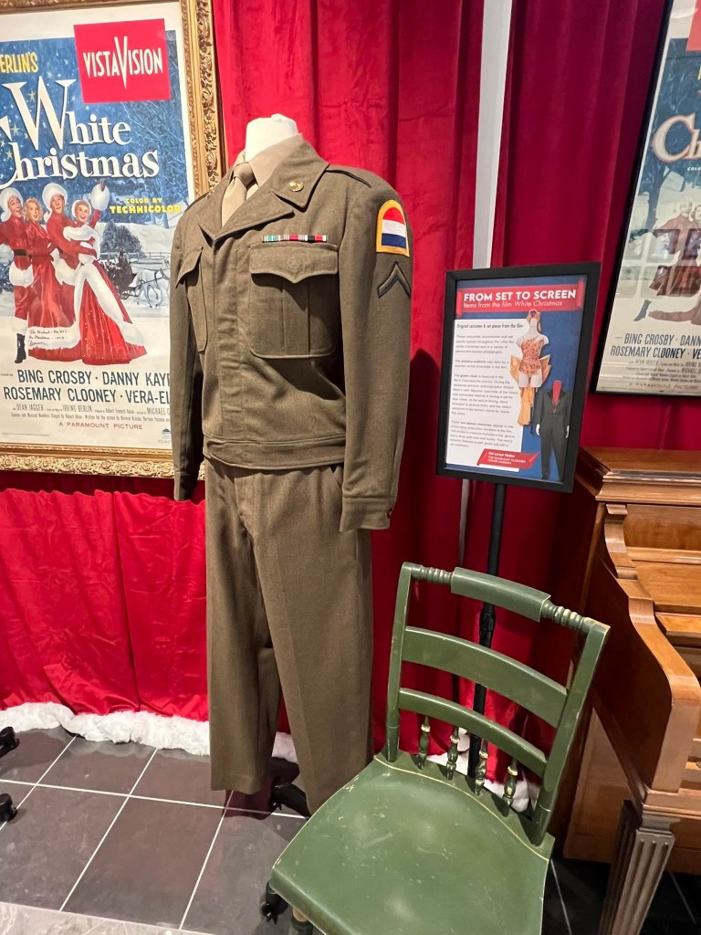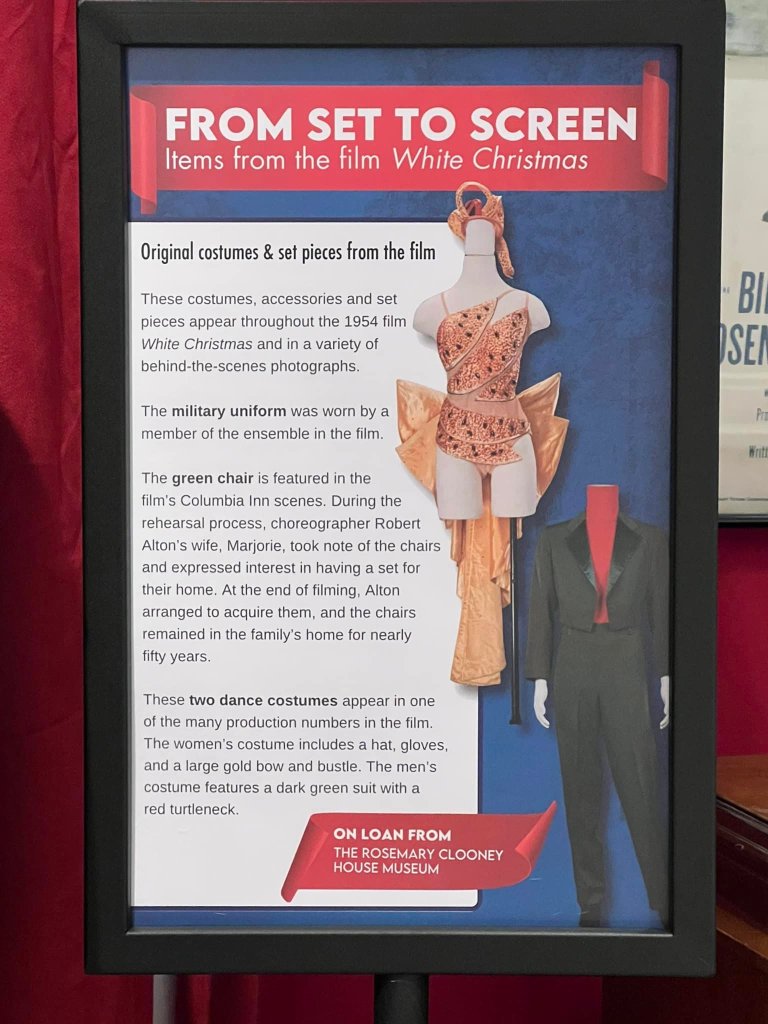 The Great American Songbook Foundation in Carmel, Indiana, is a wonderful resource to fans of the Great American Songbook and Golden Age Cinema. They have so many fascinating pieces in their collection–courtesy of their founder, Michael Feinstein–and provide quality educational programming on the subject. They maintain an exhibition space in the Allied Solutions Center for the Performing Arts and have plans to build a standalone museum in the future. In December 2025, they dedicated their exhibition space to White Christmas (1954), showcasing select items from both their collection and the Rosemary Clooney House Collection. I am delighted to share photos from my time visiting the collection and to highlight some of my favorite pieces.