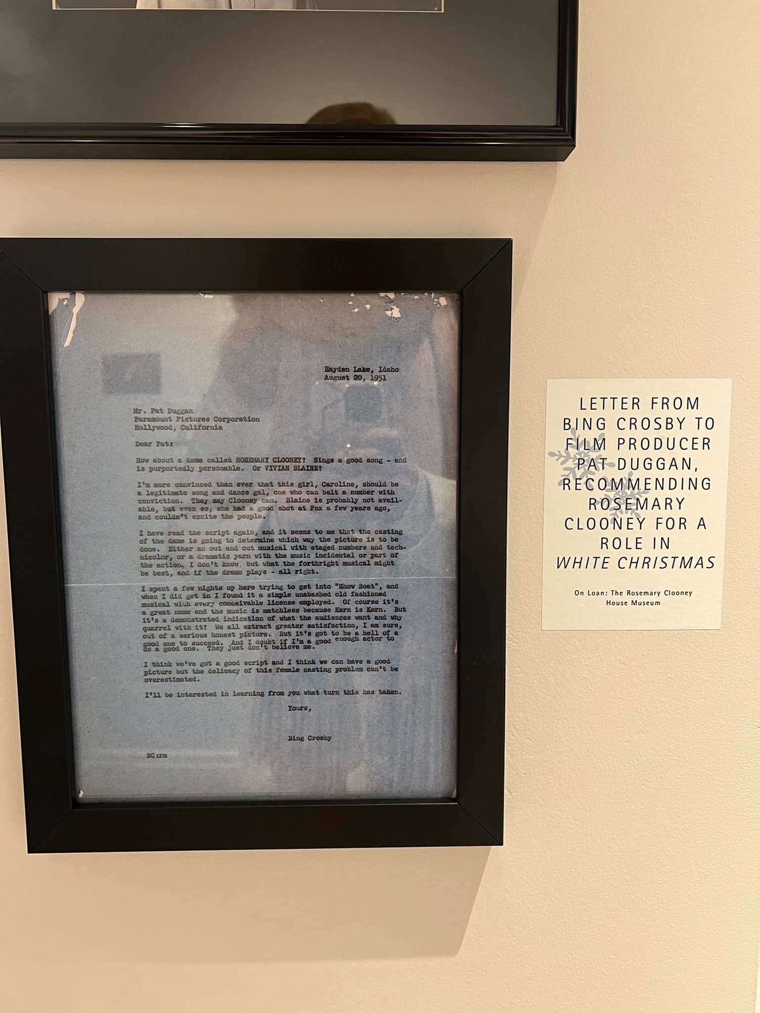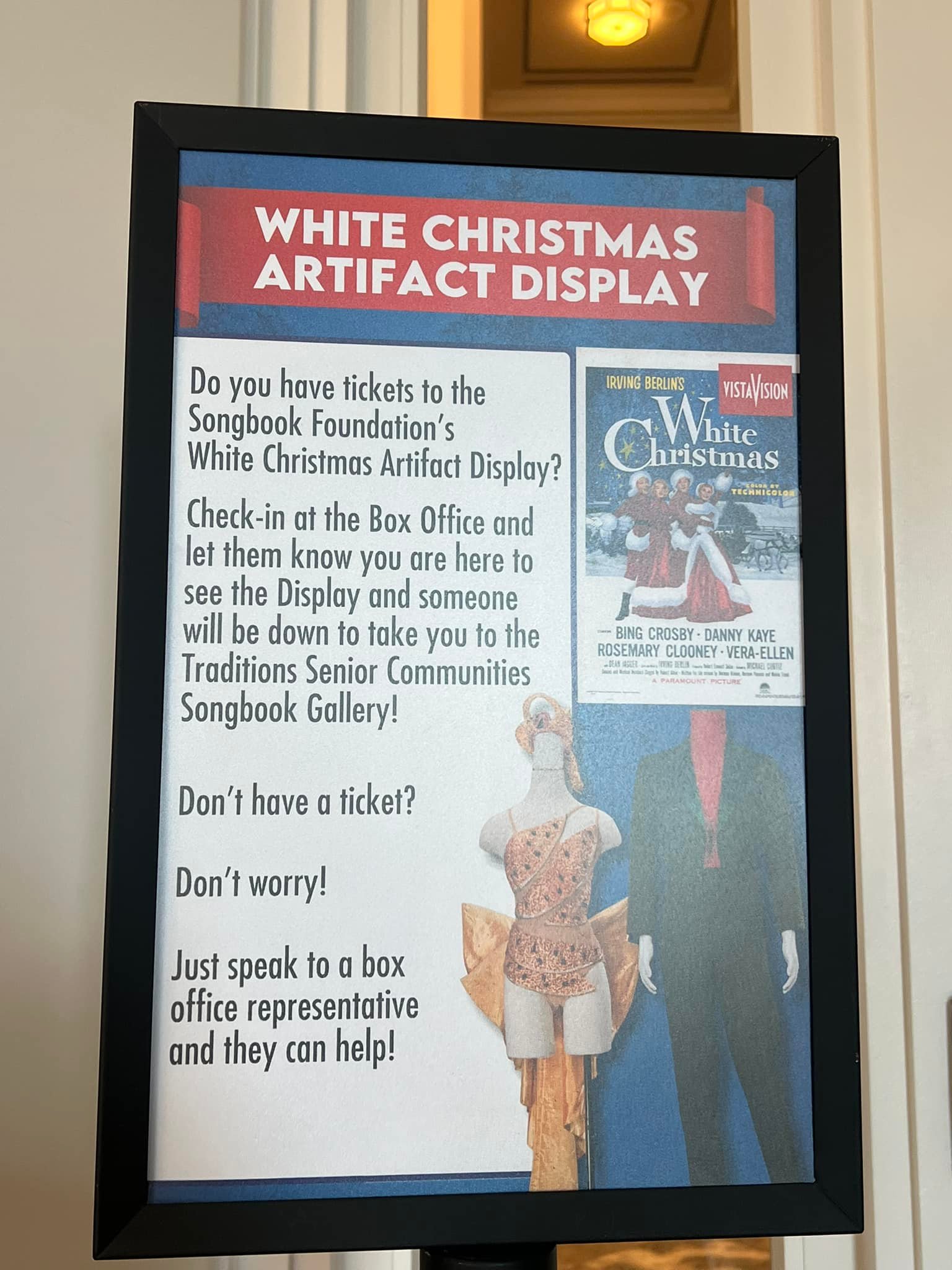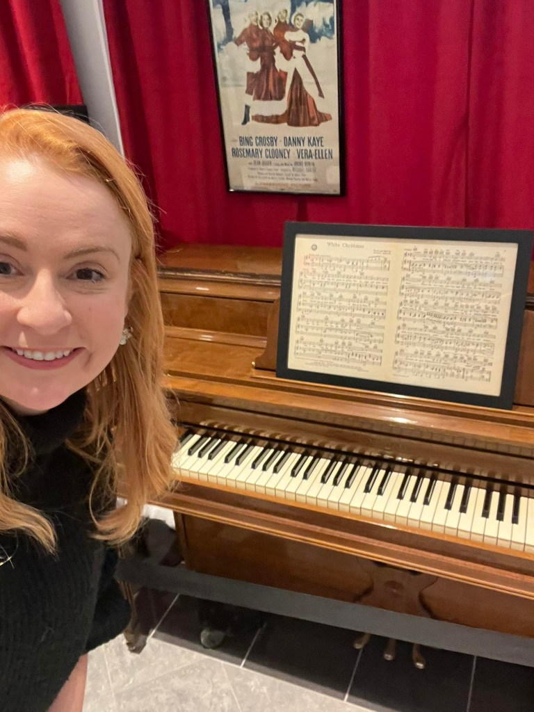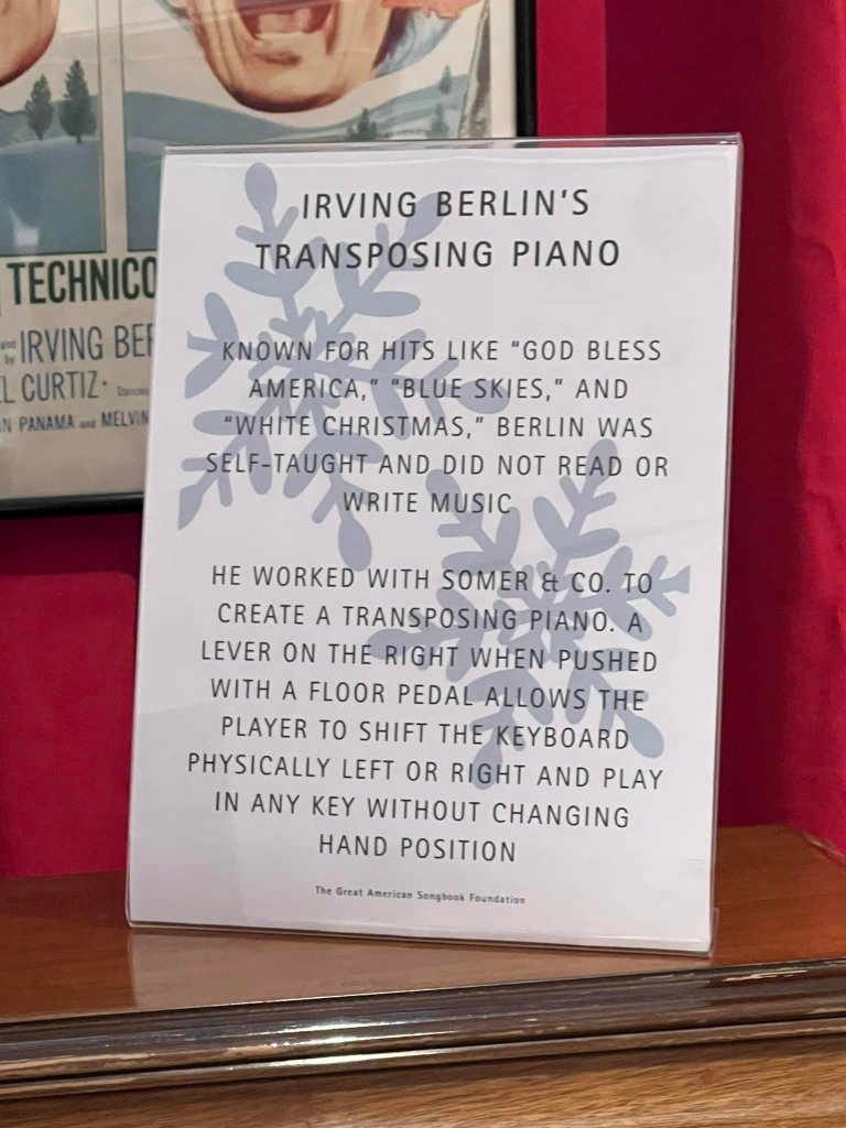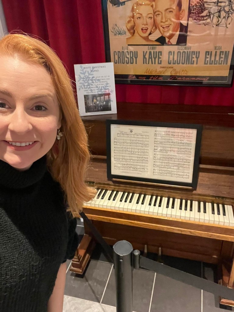 The Great American Songbook Foundation in Carmel, Indiana, is a wonderful resource to fans of the Great American Songbook and Golden Age Cinema. They have so many fascinating pieces in their collection–courtesy of their founder, Michael Feinstein–and provide quality educational programming on the subject. They maintain an exhibition space in the Allied Solutions Center for the Performing Arts and have plans to build a standalone museum in the future. In December 2025, they dedicated their exhibition space to White Christmas (1954), showcasing select items from both their collection and the Rosemary Clooney House Collection. I am delighted to share photos from my time visiting the collection and to highlight some of my favorite pieces.