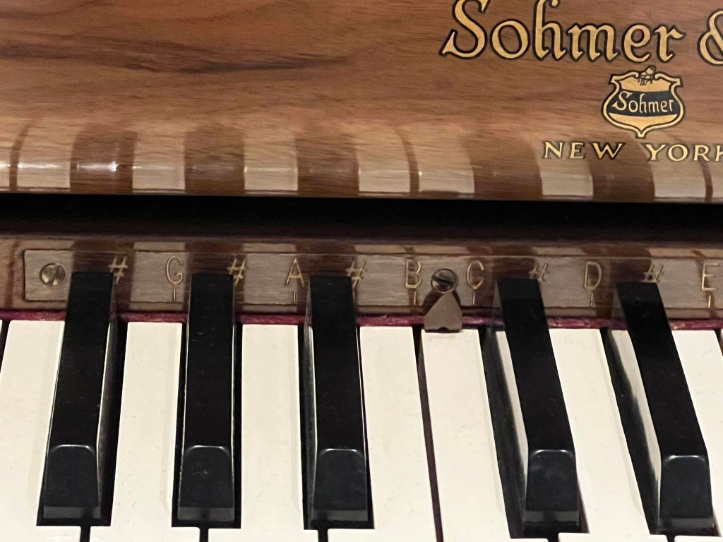 Composer Irving Berlin famously worked with transposing pianos. Though Berlin played the piano in F-sharp, the use of a lever below the keyboard allowed him to transpose his composition to different keys. Above the keys, one can see to which key the piano is transposed. He affectionately referred to his transposing pianos as “Buicks.” This piano is a fairly recent donation to the Great American Songbook Foundation’s growing collection of notable composer pianos.