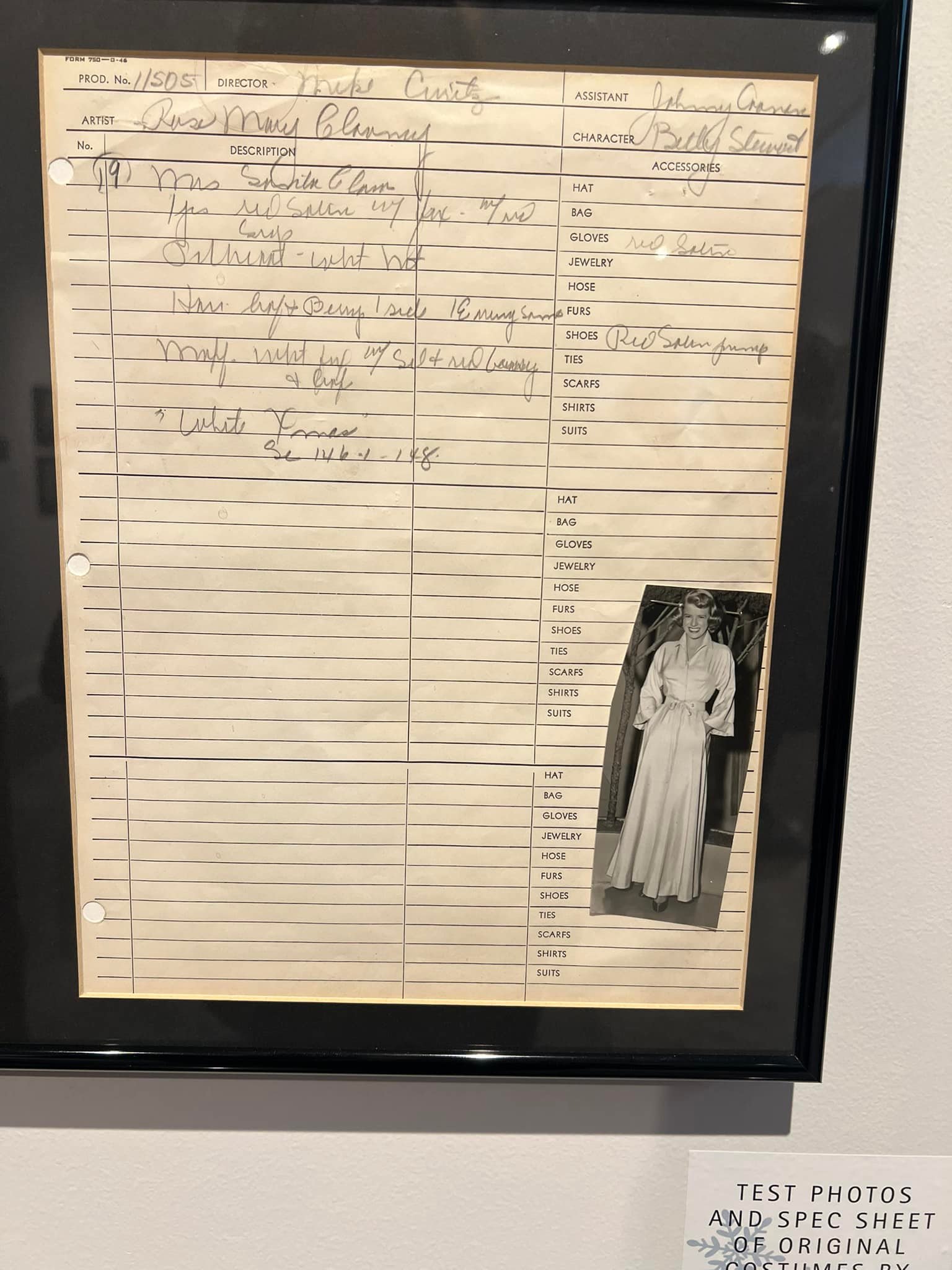 They also had documentation regarding the costumes, featuring the interesting detail of Rosemary Clooney’s character being named Betty Stewart–not Betty Haynes.