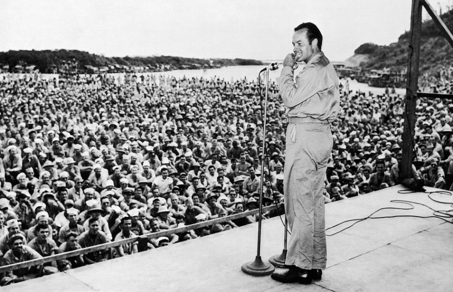Richard Zoglin’s new book, Hope, is a biography of the comedian Bob Hope. Here, Hope performs for servicemen at Munda Airstrip, New Georgia, Solomon Islands, in 1944