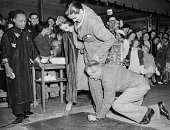 USA Los Angeles Young, Loretta – Schauspielerin, USA – *06.01.1913-12.08.2000+ und Schauspielerkollege Tyrone Power hinterlassen ihre Fussabdruecke im Beton vor Grauman`s Chinese Theatre – 1937 Originalaufnahme im Archiv von ullstein bild USA Los Angeles Young, Loretta – Actress, USA – *06.01.1913-12.08.2000+ and fellow actor Tyrone Power are leaving their footprints behind on the ground in front of Grauman`s Chinese Theatre – 1937 Vintage property of ullstein bild