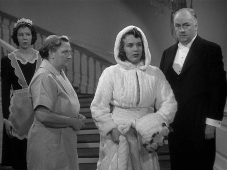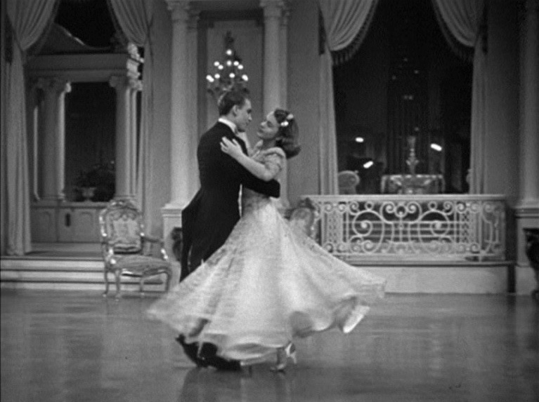 While the tale of Cinderella has been explored in so many ways, one delightful classic Hollywood take on the story is the musical comedy First Love (1939). Starring Deanna Durbin as Constance or “Connie,” an orphan girl who lives with her aunt and uncle, the story portrays the various ups and downs of her life. Her spoiled cousins only work to pose obstacles in her life, particularly when a major ball takes places place. There, and assisted by her kind uncle, she falls in love with her cousin’s boyfriend, Ted, played by Robert Stack. Though Connie struggles with the upper-class individuals in her new life, she immediately befriends the servants, who adore her.