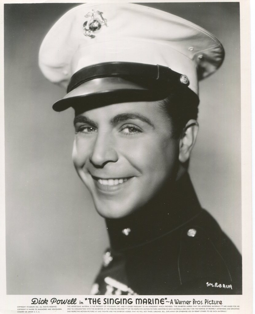 The Singing Marine features Powell portraying Bob Brent, a Marine from Arkansas, who impresses his fellow Marines (and their girlfriends) with his striking voice. Due to his singing ability, the Marines collectively raise funds for him to travel to New York in an effort to partake in an amateur contest. Though Brent is in the midst of a romance, his success as a singer soon vastly alters his personality and priorities as the film continues.