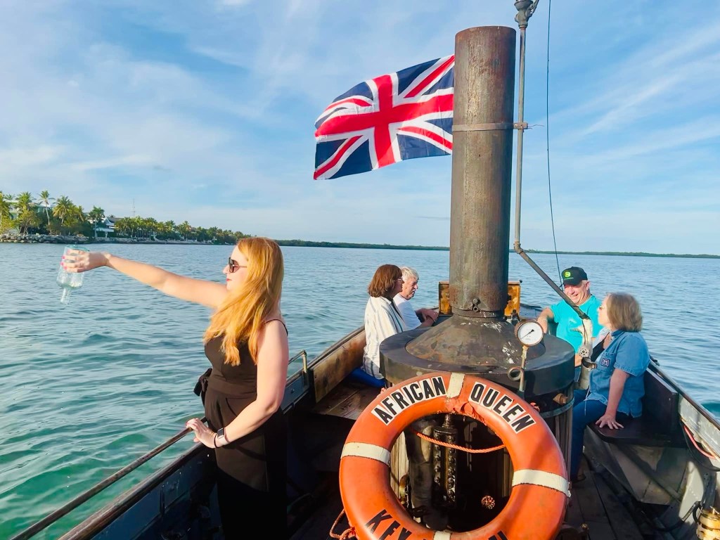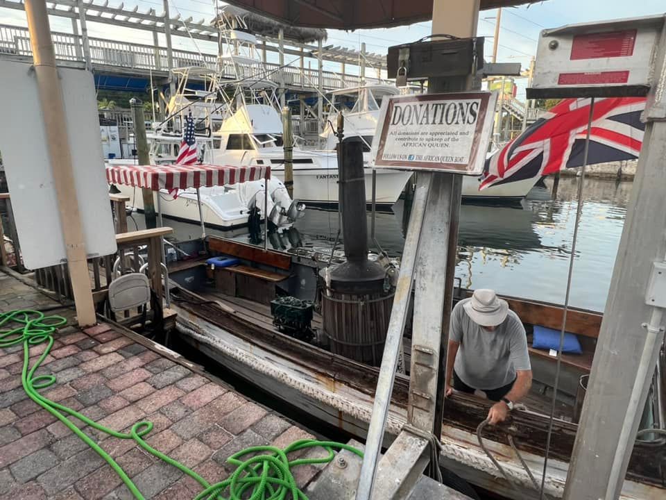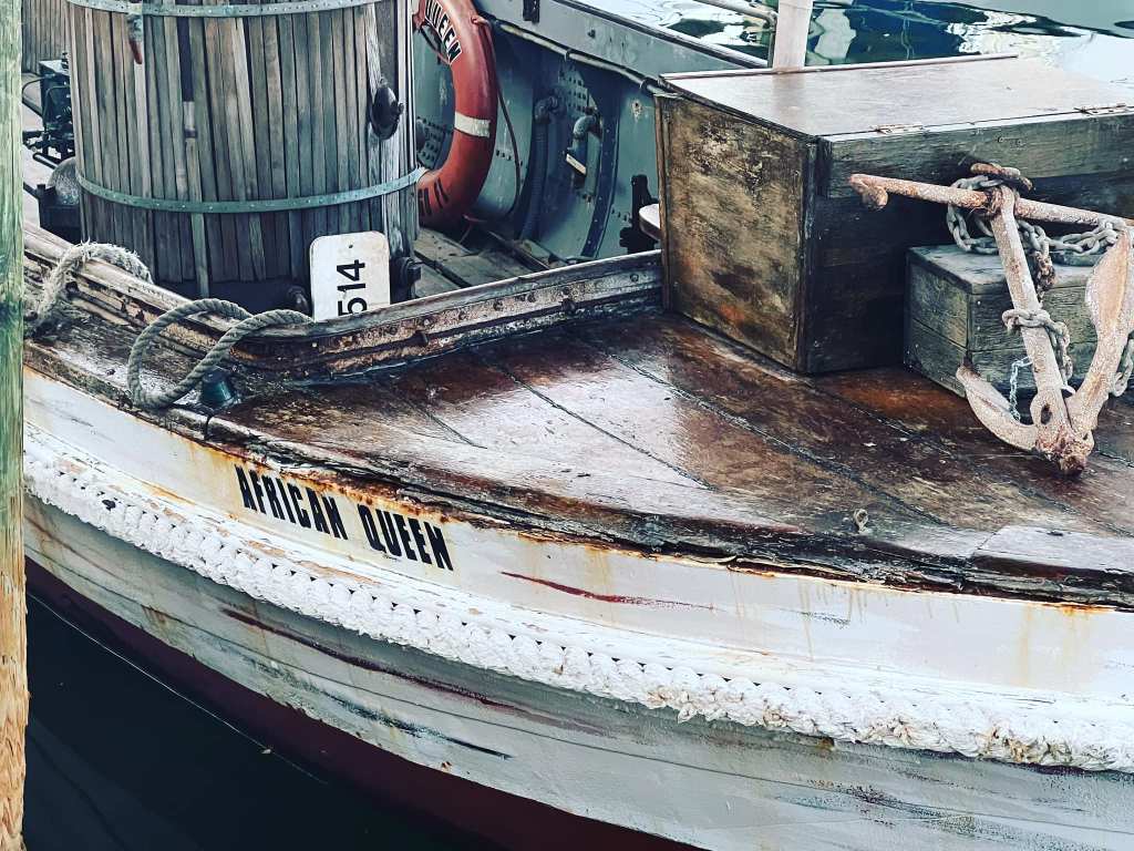 Most excitingly, The African Queen was actually the L.S. Livingston, which had been a working diesel boat for 40 years. The steam engine was a prop, and the real diesel engine was hidden under stacked crates of gin and other cargo. At one time it was owned by actor Fess Parker and toured the world as part of various exhibitions. The boat was restored in April 2012 and is docked next to the Holiday Inn in Key Largo, Florida. Individuals may book a voyage aboard The African Queen.