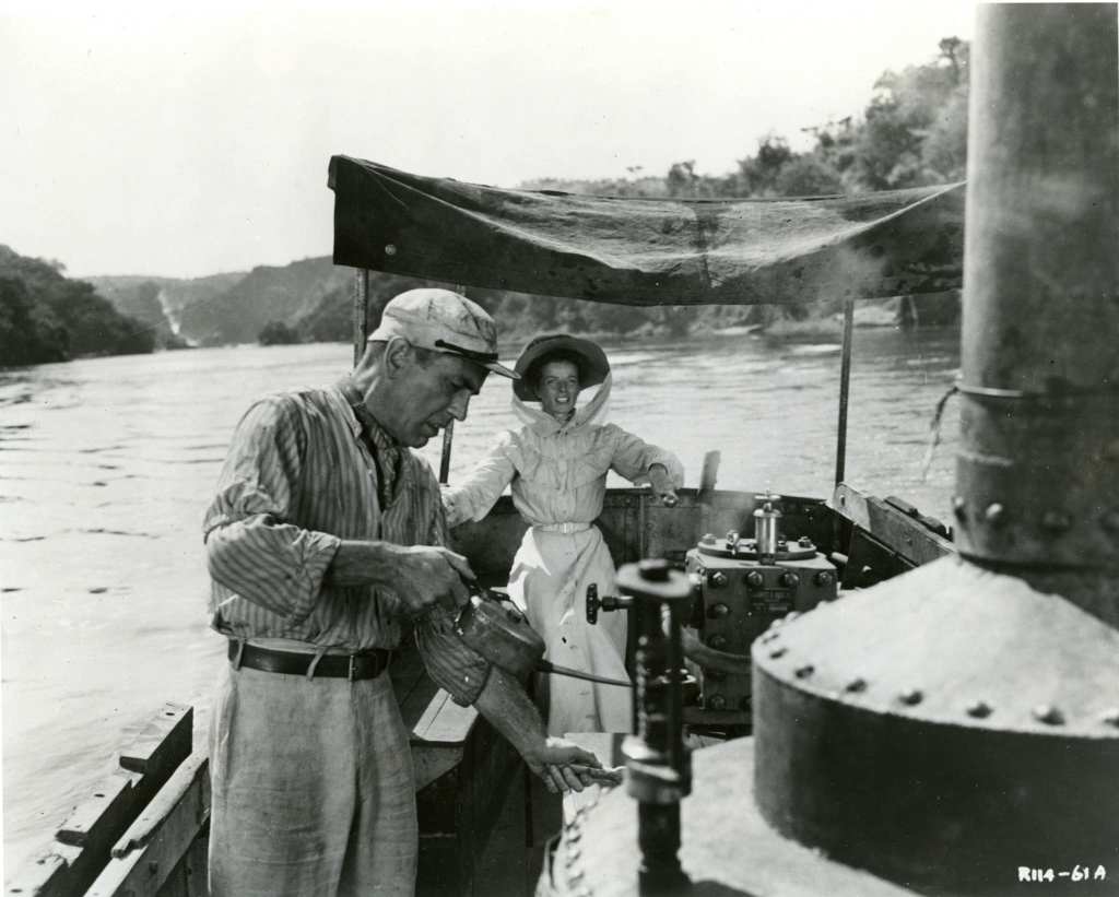 The majority of the film was shot on location in Uganda and the Congo in Africa, posing its fair share of challenges in transporting large three-strip Technicolor cameras in additio to the cast and crew frequentlhy falling ill. In fact, Hepburn kept a bucket off-screen during her character’s organ-playing sequences. Bogart said that, “All I ate was baked beans, canned asparagus, and Scotch whiskey. Whenever a fly bit Huston or me, it dropped dead.” Hoston and Bogart claimed to evade illness by basically living on Scotch whiskey.