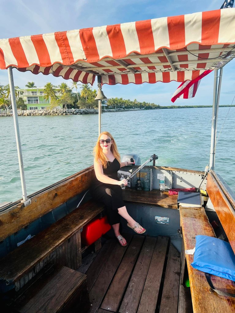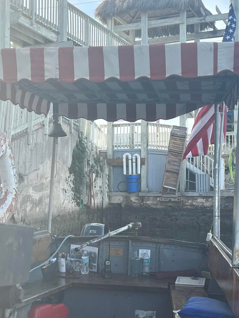 I was lucky to take this fabulous tour in January 2023. The boat fits few passengers–there were six people aboard the boat in total on my tour–and this makes for a lovely ride. The captain arrived prepared with a binder of photos to tell the story of the boat, the production of the film, and the boat’s restoration. As we went out to sea, the captain kept us entertained with stories as well as a movie trivia game (which I shamelessly won, ha!).