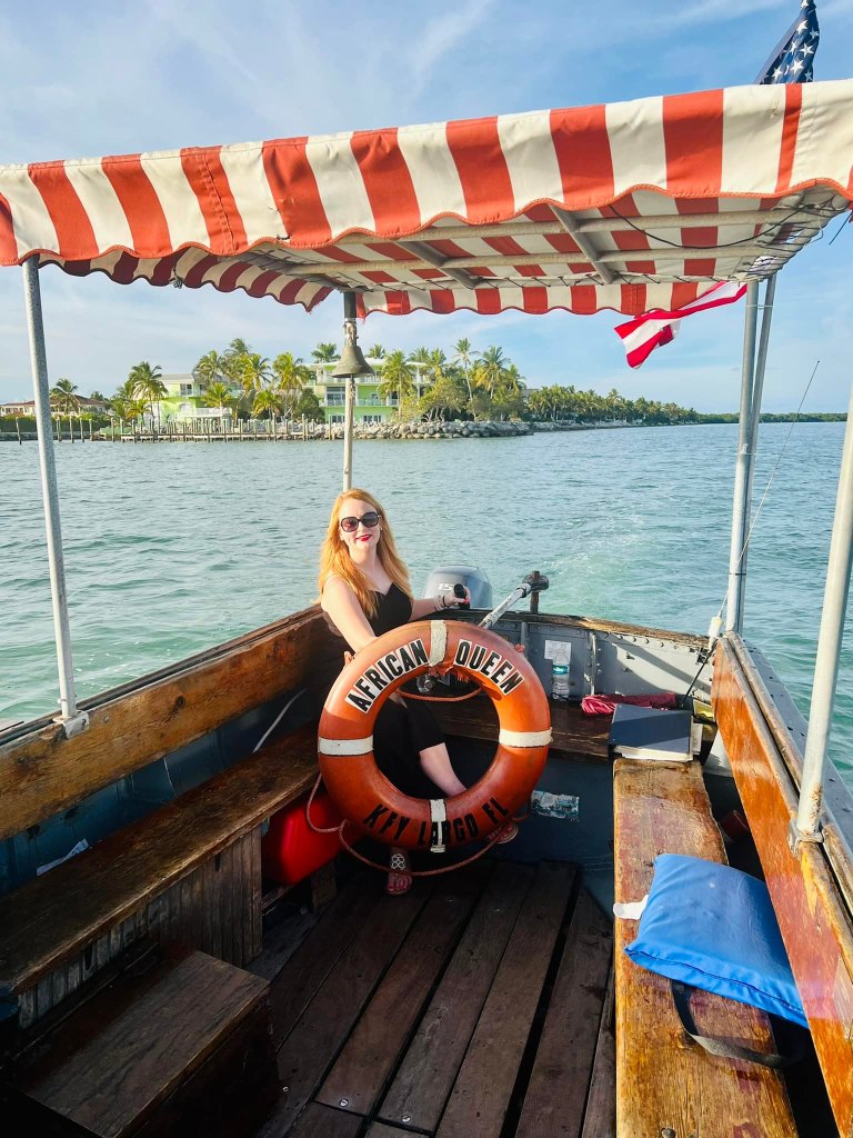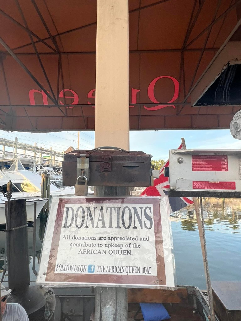 Now, here comes the moment of a LIFETIME. The captain offered us a chance to actually operate The African Queen. Again, to my shock, no one else wanted to! So, most definitely did. What I seriously did not expect was to have her under my control the entire time we were out of the no wake zone!