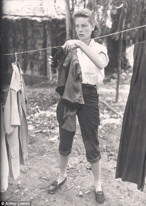 Bogart hated Africa immediately and was miserable, but Hepburn adored it, calling it “utterly divine.” Bogie complained about everything: the heat, the humidity, the dangers, the food. He recalled, “While I was griping, Katie was in her glory. She couldn’t pass a fern or berry without wanting to know its pedigree, and insisted on getting the Latin name for everything she saw walking, swimming, flying or crawling. I wanted to cut our ten-week schedule, but the way she was wallowing in the stinking hole, we’d be there for years.”