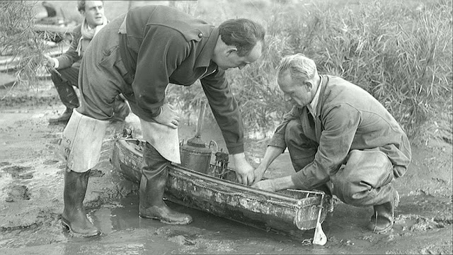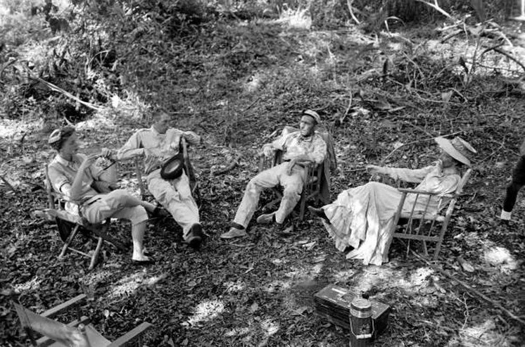 Shooting was slow going. Tempers often flared and the cast and crew faced constant dangers and difficulties including torrential rains that would close down shooting, wild animals, venomous snakes and scorpions, crocodiles, armies of ants, water so contaminated that they couldn’t even brush their teeth with it, and food that was less than appetizing. Bacall recalled, “We decided first night out that it was advisable not to ask what we were eating, we didn’t want to know.”