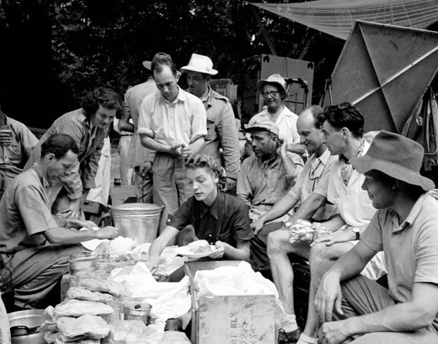 Sources claimed that everyone in the cast and crew got sick except Bogart and Huston, who said they avoided illness by essentially living on imported Scotch whiskey. Bogart later said, “All I ate was baked beans, canned asparagus and Scotch whiskey. Whenever a fly bit Huston or me, it dropped dead.” Lauren Bacall famously ventured along for the filming in Africa to be with husband Bogart. She played den mother during the trip, making camp and cooking. This also marked the beginning of her life-long friendship with Hepburn. Bacall also played nursemaid to the cast and crew whenever anyone got sick, which was often. There was dysentery, malaria, and bites from all sorts of bugs to deal with. One night, a crew member even came down with appendicitis. Bacall saved the day by being the only one who had thought to bring antibiotics, which were given to the man before he was rushed to the closest hospital in Stanleyville for emergency surgery.