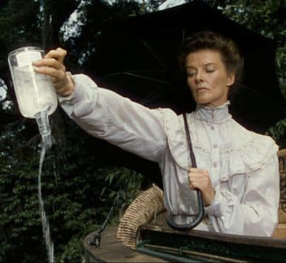 The majority of the film was shot on location in Uganda and the Congo in Africa, posing its fair share of challenges in transporting large three-strip Technicolor cameras in additio to the cast and crew frequentlhy falling ill. In fact, Hepburn kept a bucket off-screen during her character’s organ-playing sequences. Bogart said that, “All I ate was baked beans, canned asparagus, and Scotch whiskey. Whenever a fly bit Huston or me, it dropped dead.” Hoston and Bogart claimed to evade illness by basically living on Scotch whiskey.