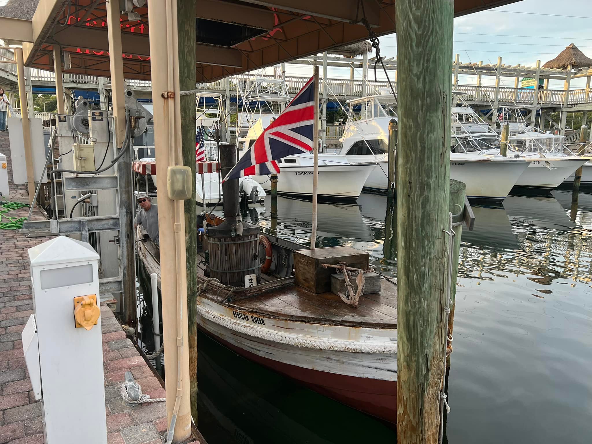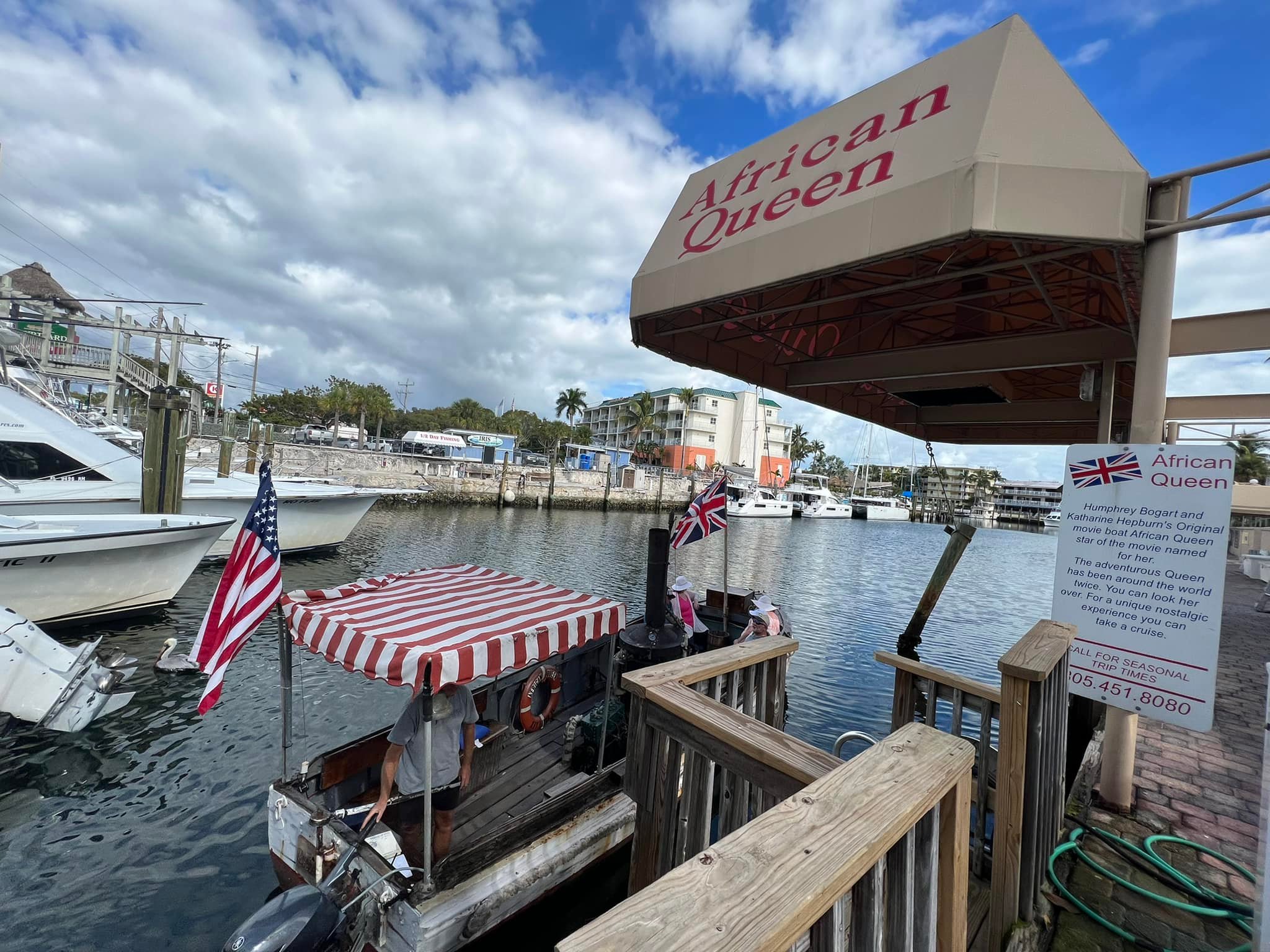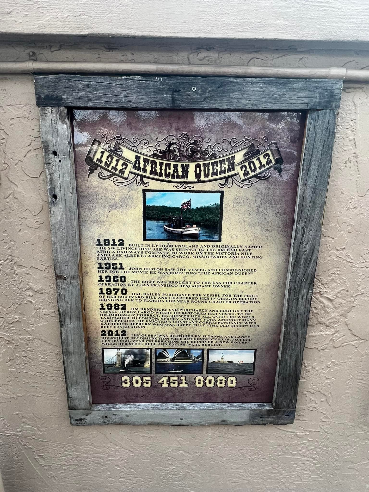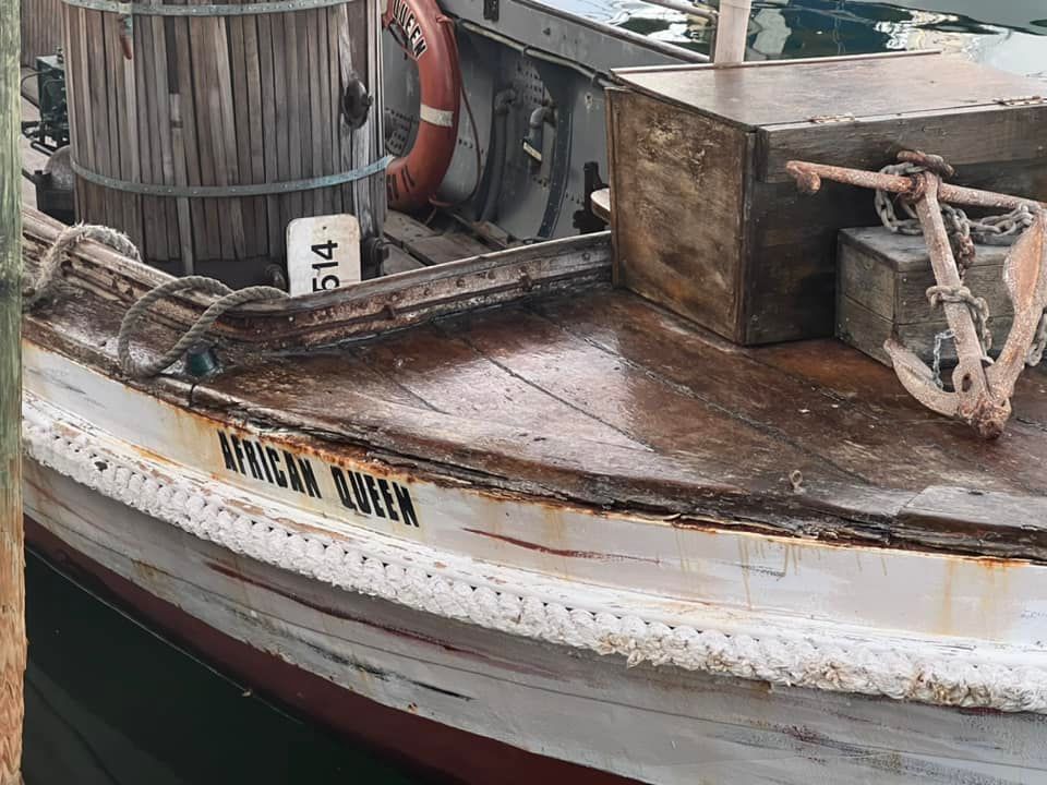 Most excitingly, The African Queen was actually the L.S. Livingston, which had been a working diesel boat for 40 years. The steam engine was a prop, and the real diesel engine was hidden under stacked crates of gin and other cargo. At one time it was owned by actor Fess Parker and toured the world as part of various exhibitions. The boat was restored in April 2012 and is docked next to the Holiday Inn in Key Largo, Florida. Individuals may book a voyage aboard The African Queen.