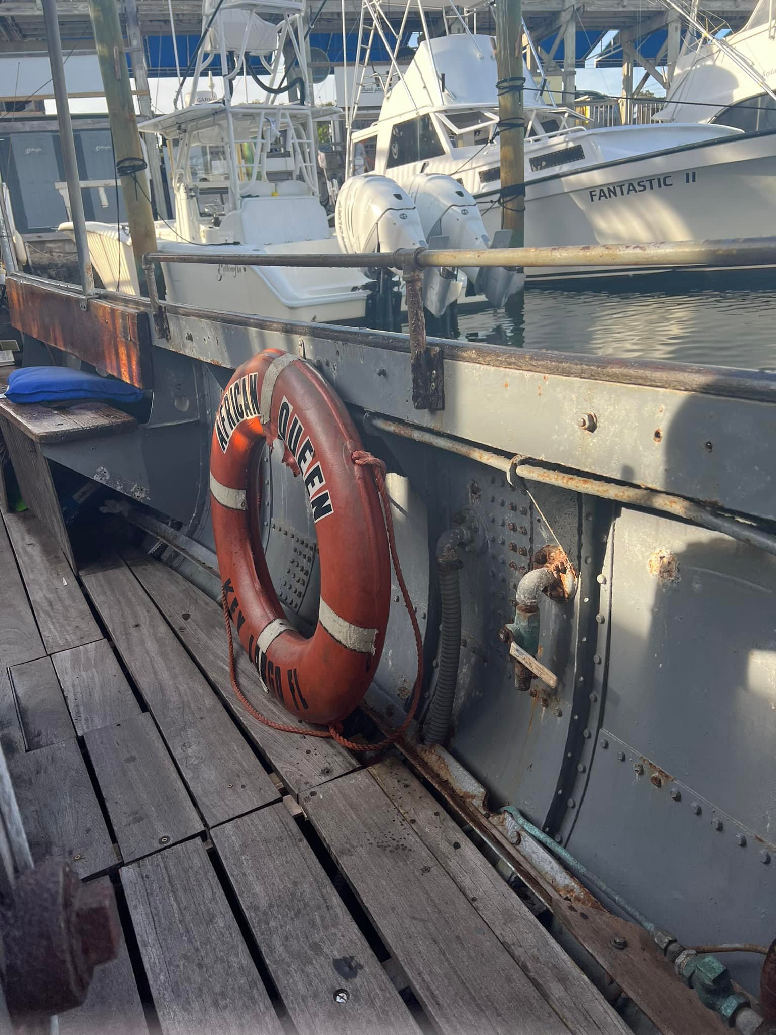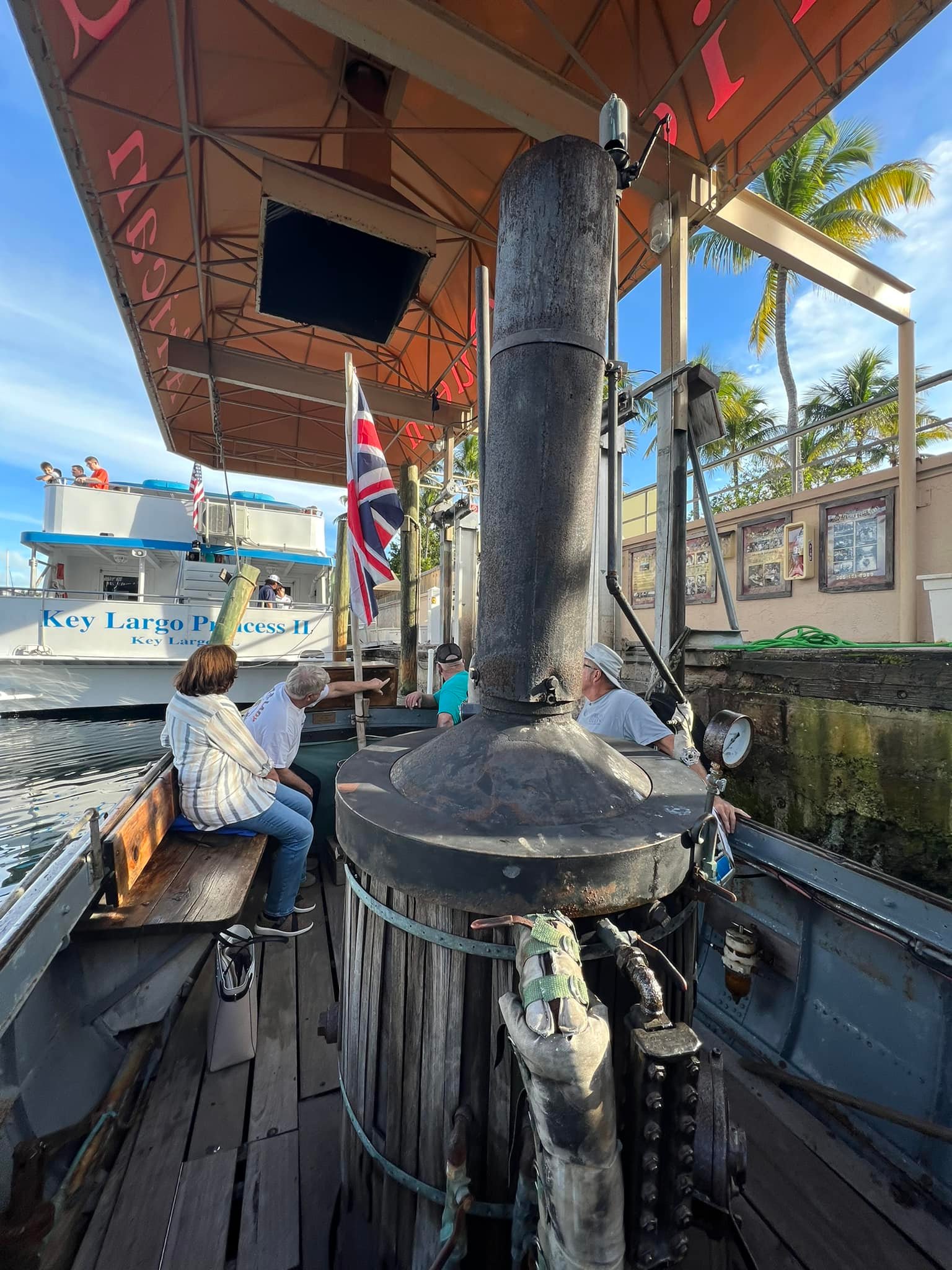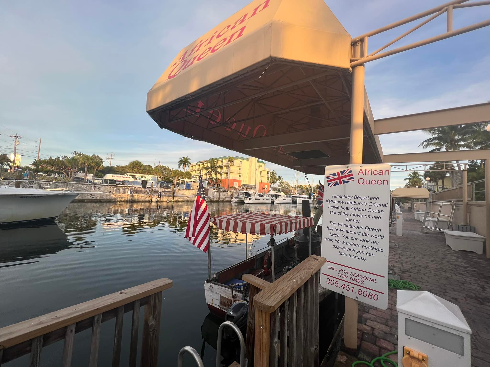 Most excitingly, The African Queen was actually the L.S. Livingston, which had been a working diesel boat for 40 years. The steam engine was a prop, and the real diesel engine was hidden under stacked crates of gin and other cargo. At one time it was owned by actor Fess Parker and toured the world as part of various exhibitions. The boat was restored in April 2012 and is docked next to the Holiday Inn in Key Largo, Florida. Individuals may book a voyage aboard The African Queen.