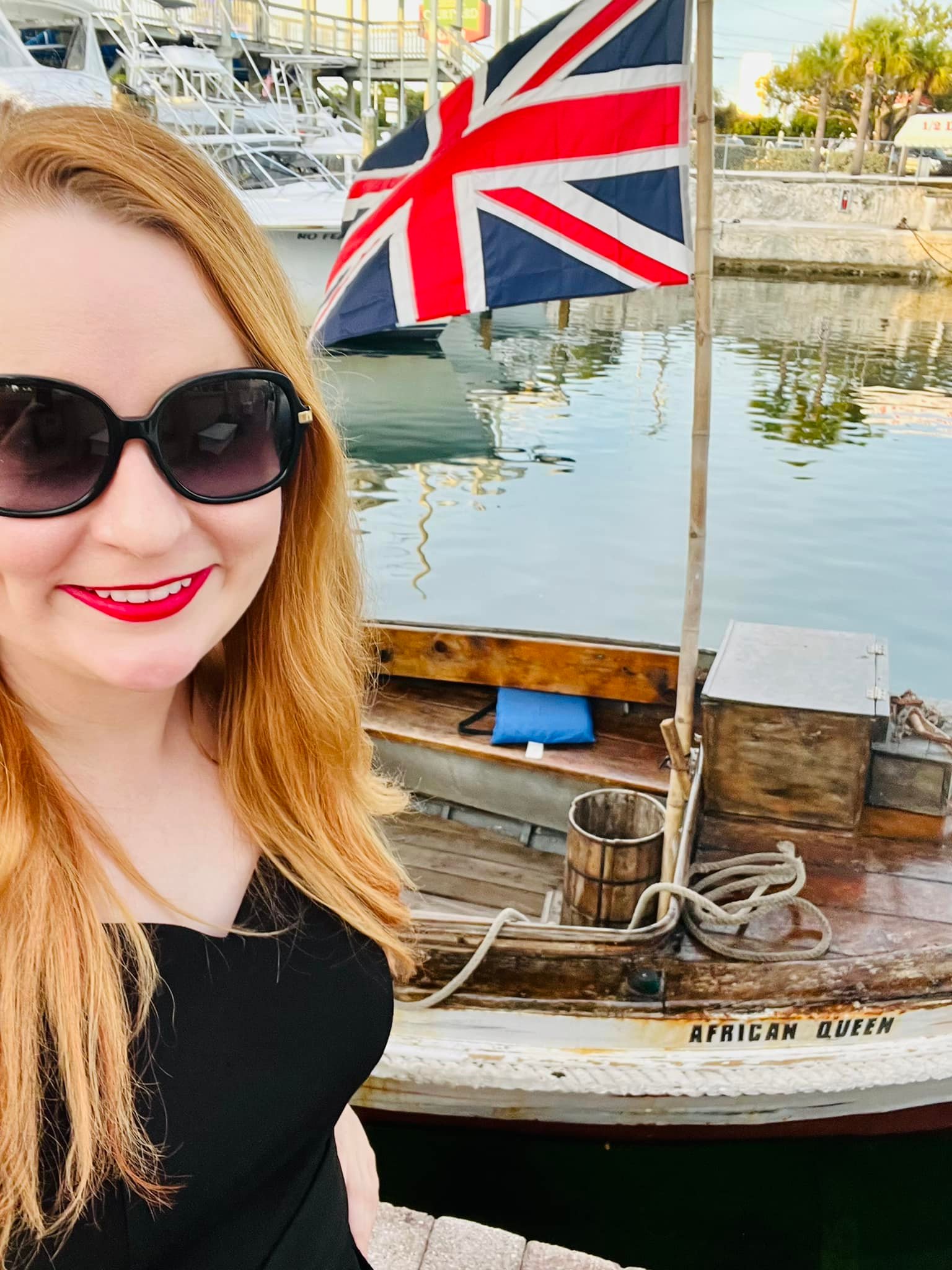 I was lucky to take this fabulous tour in January 2023. The boat fits few passengers–there were six people aboard the boat in total on my tour–and this makes for a lovely ride. The captain arrived prepared with a binder of photos to tell the story of the boat, the production of the film, and the boat’s restoration. As we went out to sea, the captain kept us entertained with stories as well as a movie trivia game (which I shamelessly won, ha!).