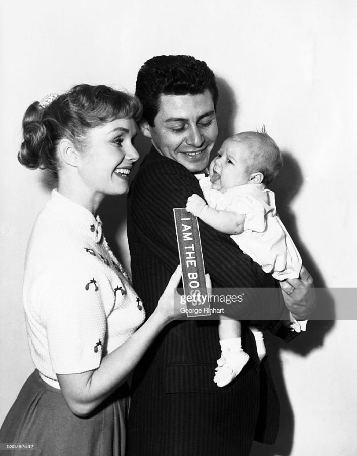 (Original Caption) Debbie Reynolds- Eddie Fisher with daughter Carrie Frances born October 21, 1956 (Photo by George Rinhart/Corbis via Getty Images)