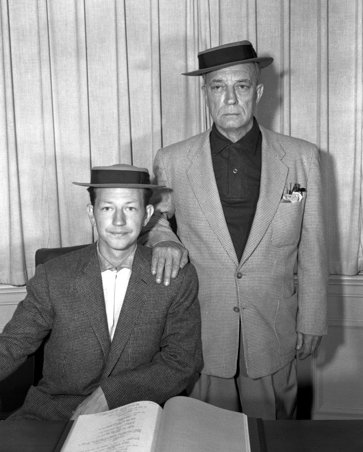 1956: His life in His Hands. Veteran comic Buster Keaton meets up with Donald O’Connor who will be starred in Paramount’s “The Buster Keaton Story.” Yes, Donald will be Buster in the motion picture biography, to highlight many incidents in the life and career of the funster. Buster will be on hand to be sure that Donald does a realistic job of the role, for he’s been hired as technical advisor.