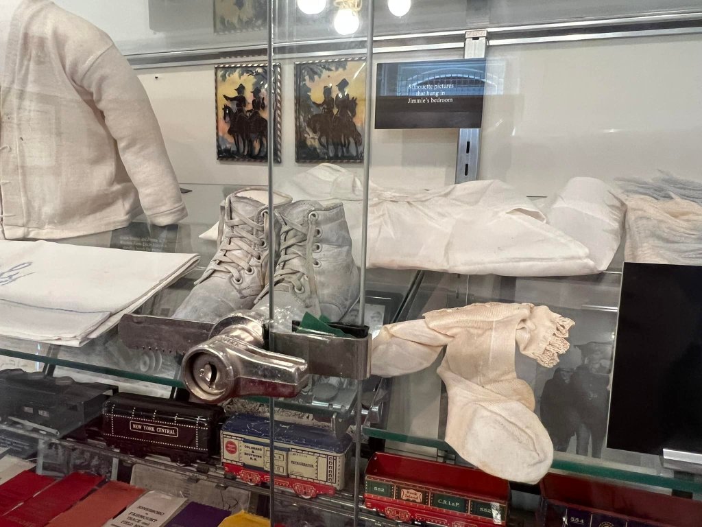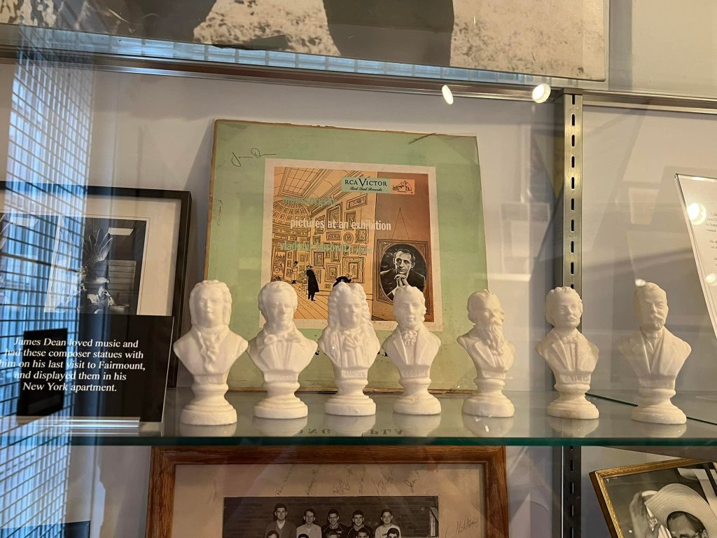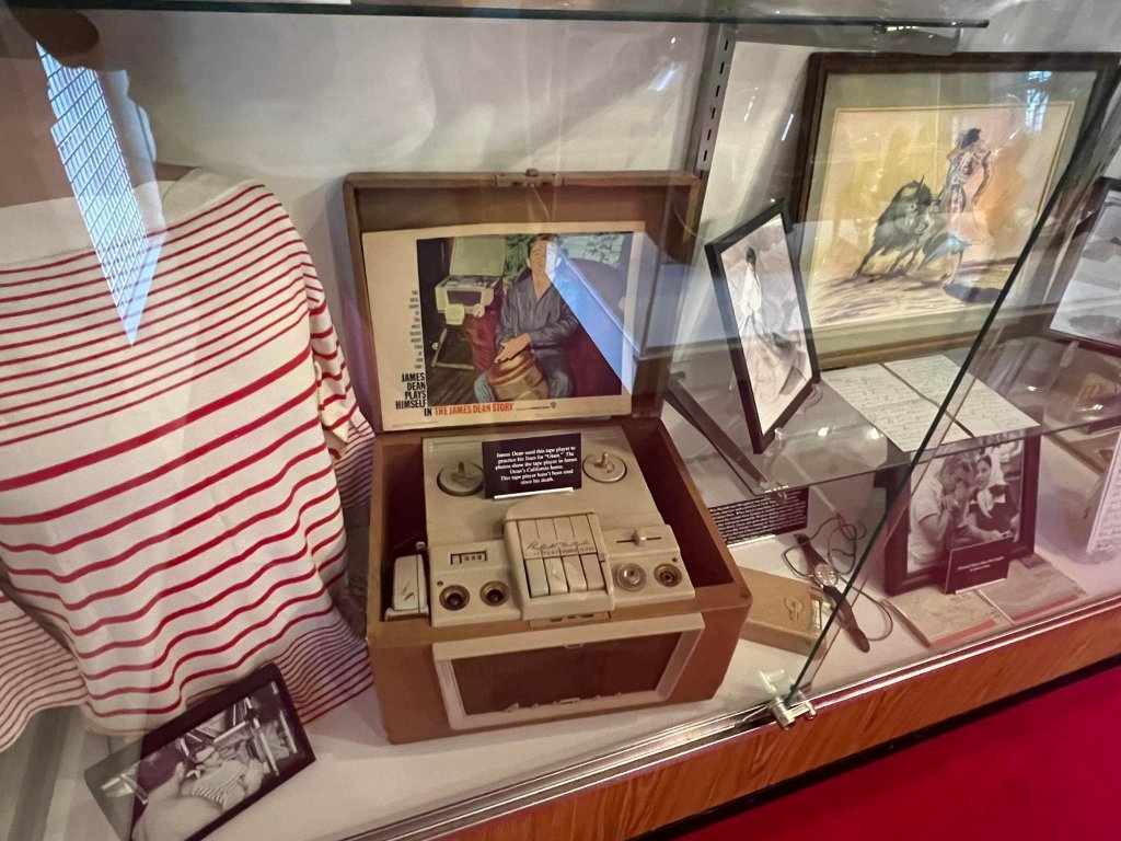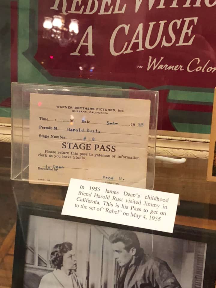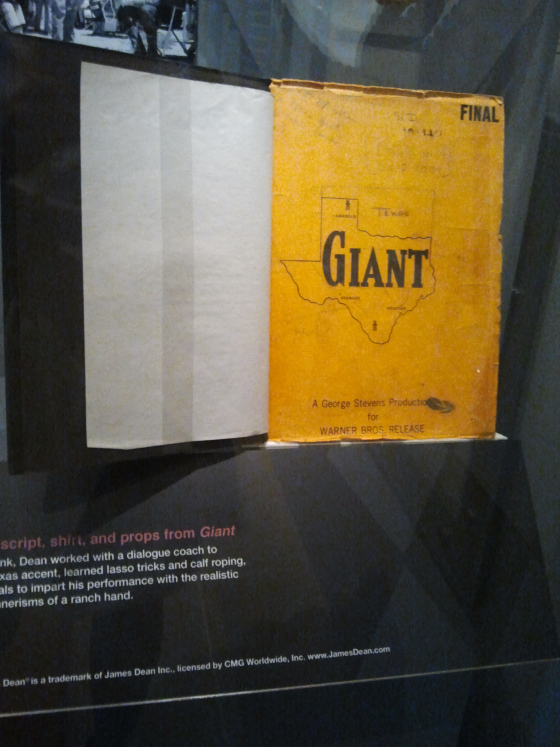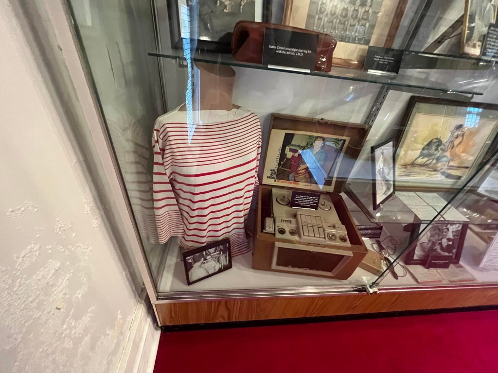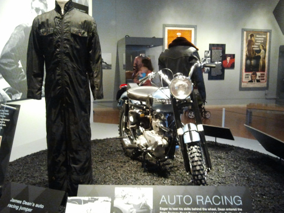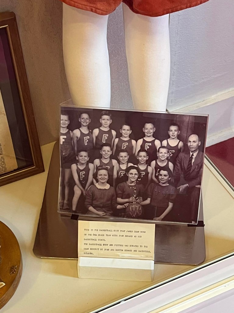Update, 2012: Years after my first trip to Fairmount, the Indiana State Museum honored Dean with an exhibit. Here are some shots from that display. My favorite item is the East of Eden suit; however, you’ll also find the script from Giant, the car in which Dean drove his prom date, his middle school basketball uniform, and more.