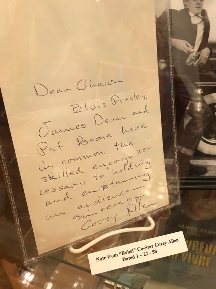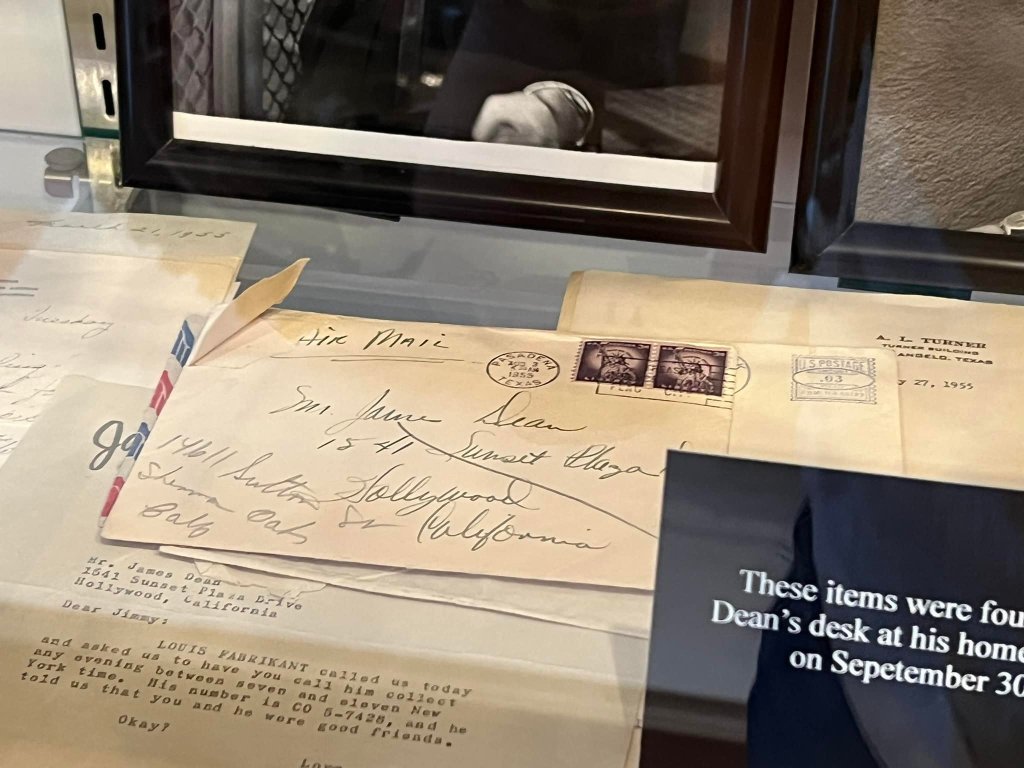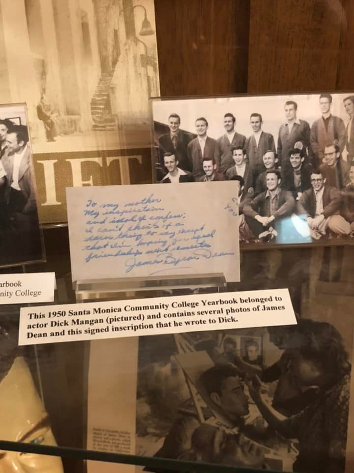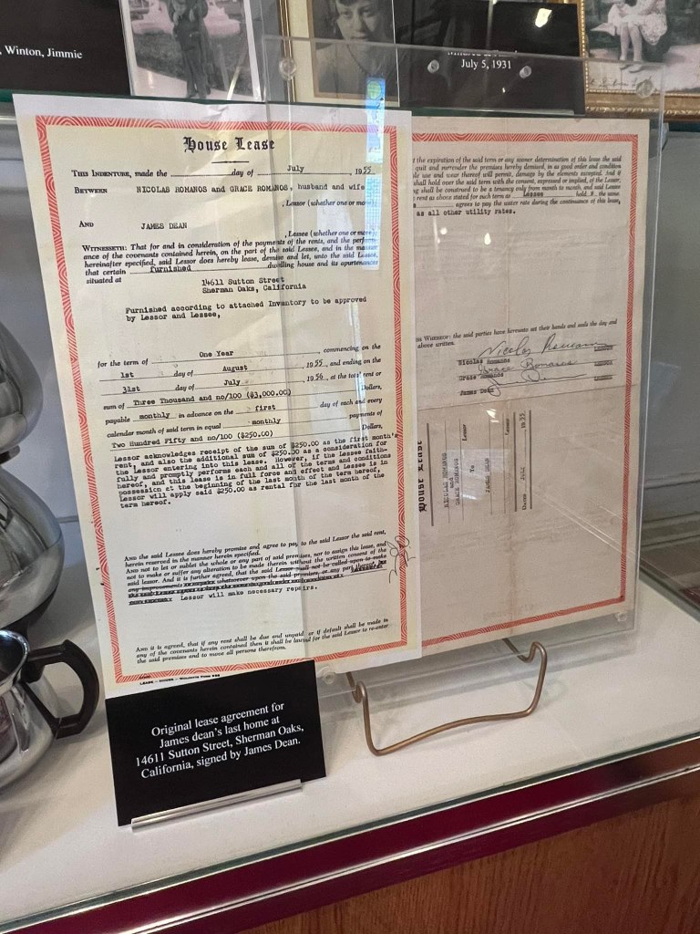They also had some photos featuring Dean visiting his old high school, which include him signing autographs and sitting in his former classroom. Additionally, they have the initial ticket he was issued on the day he passed.