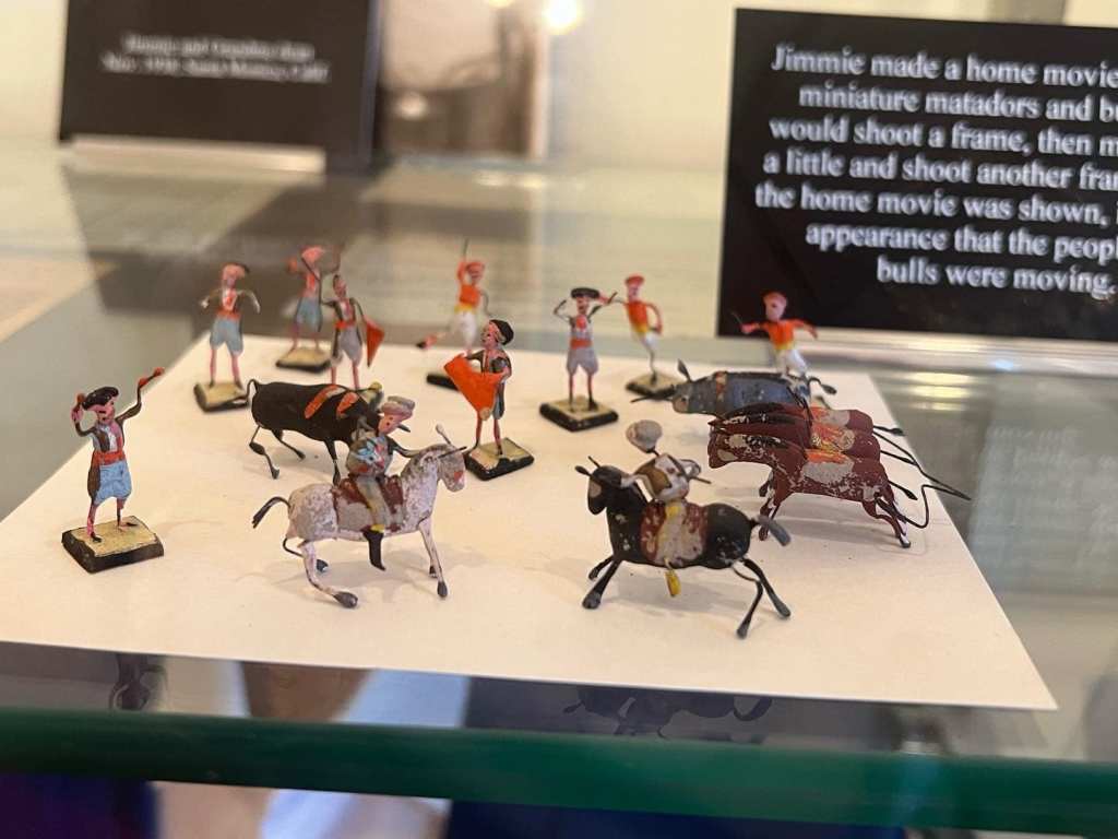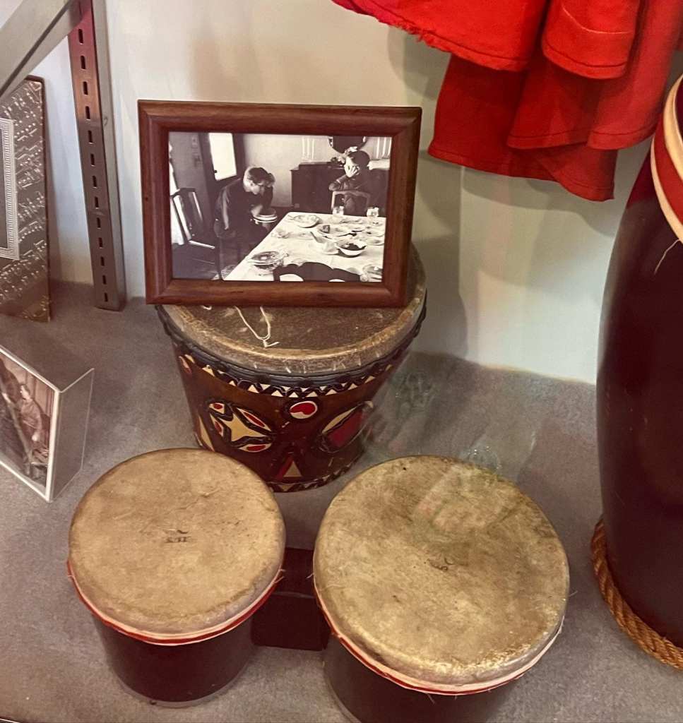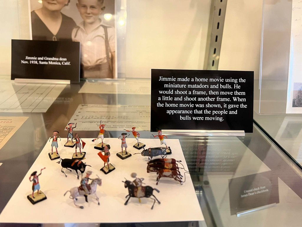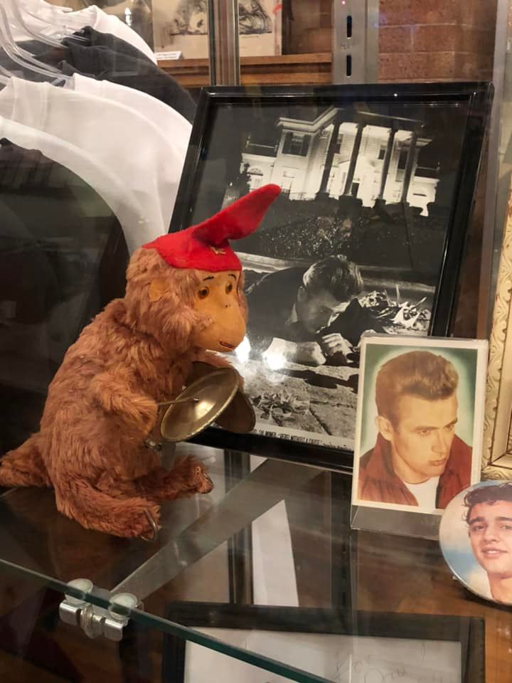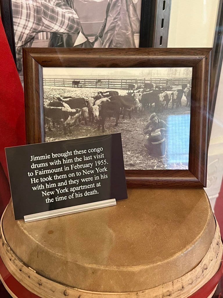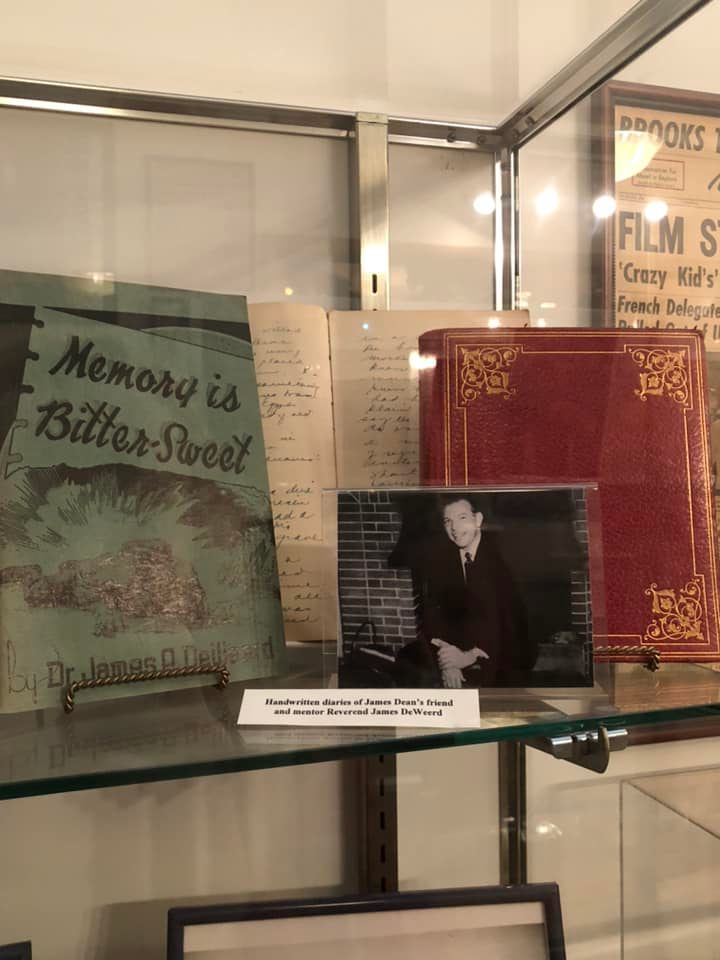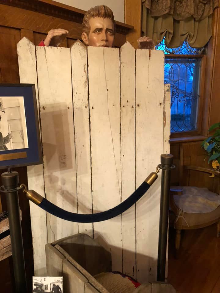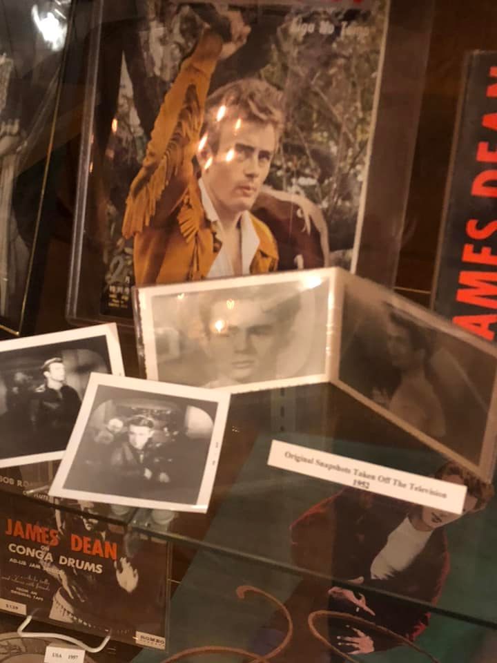 One of my favorite artifacts includes a picture of James Dean on a visit home, playing his conga drums in the middle of a pig pen.