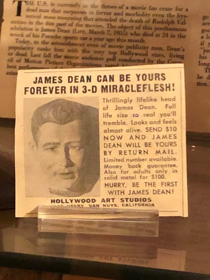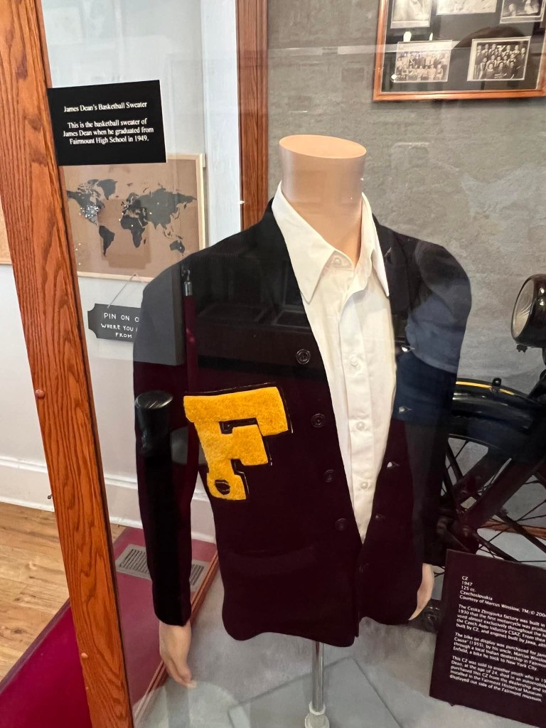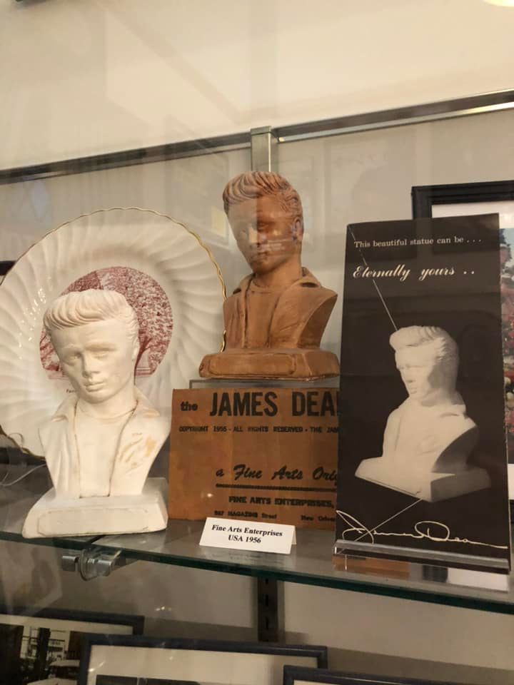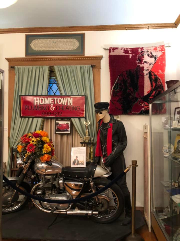 The James Dean Museum is located at 203 E. Washington St., Fairmount, Indiana. The staff members love to talk about James but also celebrate cartoonist Jim Davis, creator of the Garfield comics, who is also from Fairmount. The historical society contains many of his personal effects, literally scooped off of his desk by family members just after his death. They also house his motorcycles, and the story of one, in particular, was incredible. The historical society tracked Dean’s motorcycle to an owner in 1980s, who had no idea the motorcycle was owned by Dean at one point. This location has Dean’s homework, drawings, junior high basketball uniform, personal pictures, comb, conga drums, etc.