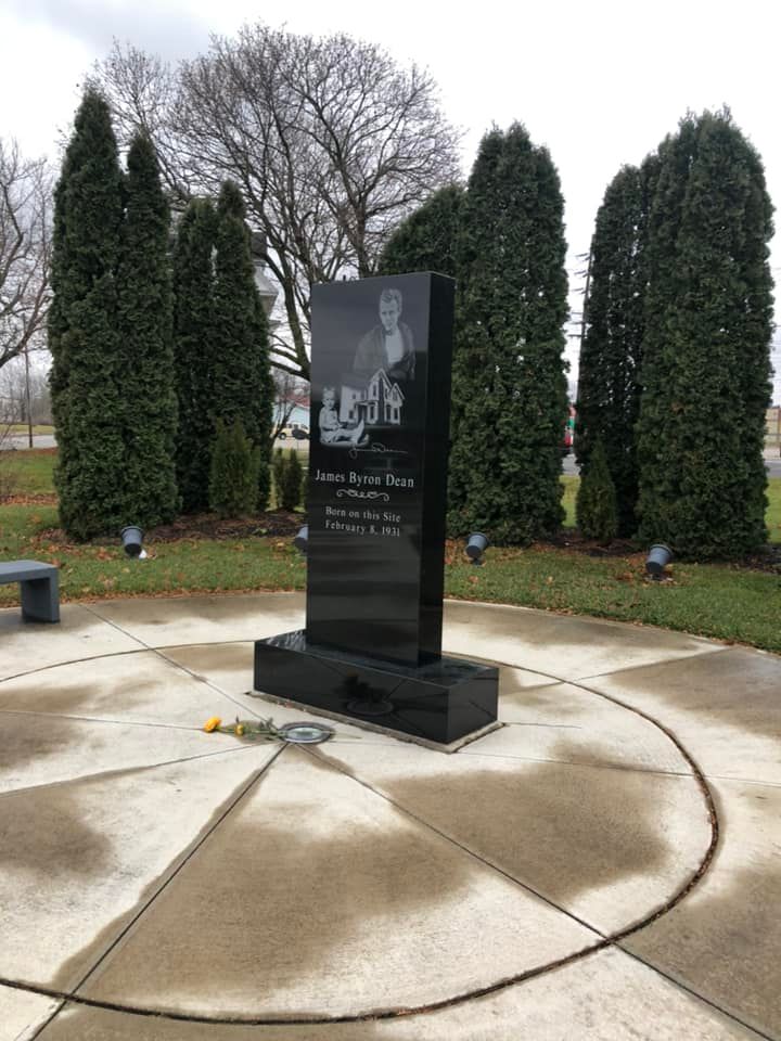 Today, Dean is remembered with tributes in numerous locations. The memorial at the site of his birthplace is marked with a plaque on the southwest corner of E. 4th St. and McClure St., Marion, Indiana. A star-shaped plaque is located on the sidewalk at the far corner of the lot. The memorial plaque, dedicated in 2015, stands in a small park area, accompanied by a marker.
