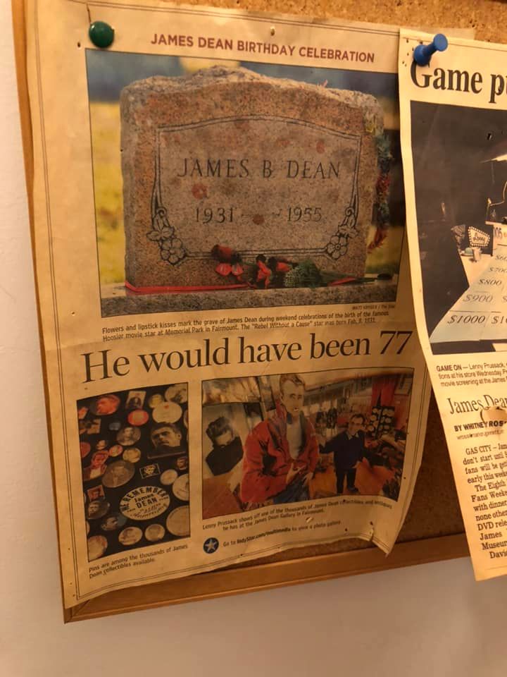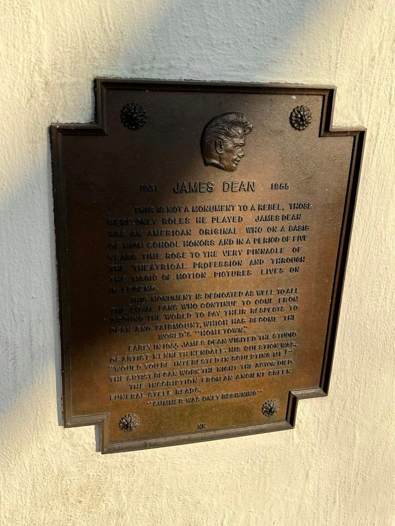 My sister & I made a road trip to Fairmount about 25 years ago, so your fine article brought back a lot of memories! We left from near Muskegon MI, spent the night in Kokomo IN & drove to Fairmount the next morning (it was in late spring, so I am not sure if they had already begun celebrating James Dean Days yet, or we surely would have gone in September instead). There were very few tourists the day we visited. I was really impressed with the James Dean Gallery & remember a small room where you could watch short videos, including the safe driving PSA he filmed with Gig Young. I recall walking by the old Fairmount High School — I wonder if it was ever replaced? We had lunch at a small diner/cafe in town that I only recall had underwhelming food & a very dark, dingy ladies’ room! Hopefully, there have been some changes for the better in town during the last couple decades!