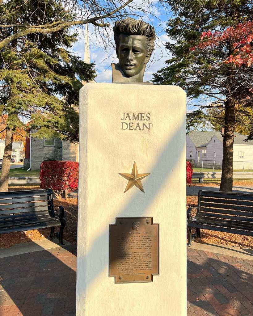 James Dean Memorial Park is located at 200 N. Main St., Fairmount, Indiana. Here, visitors can see a bust of Dean.