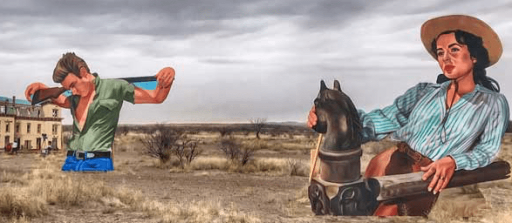 Giant was partly filmed in Marfa, Texas, which now holds large plywood tributes to its stars, including Dean. They can be spotted seven miles west of Marfa, on the north portion of US Hwy. 90.