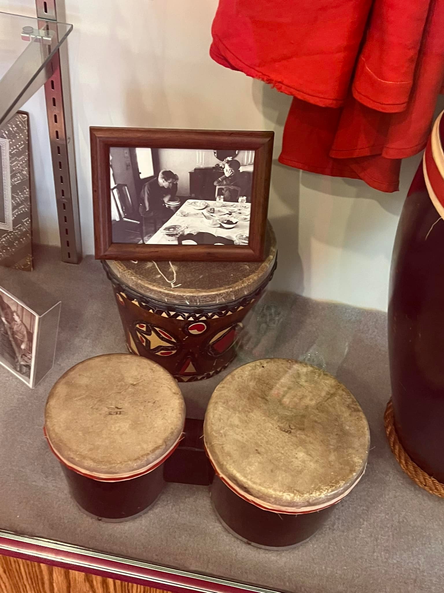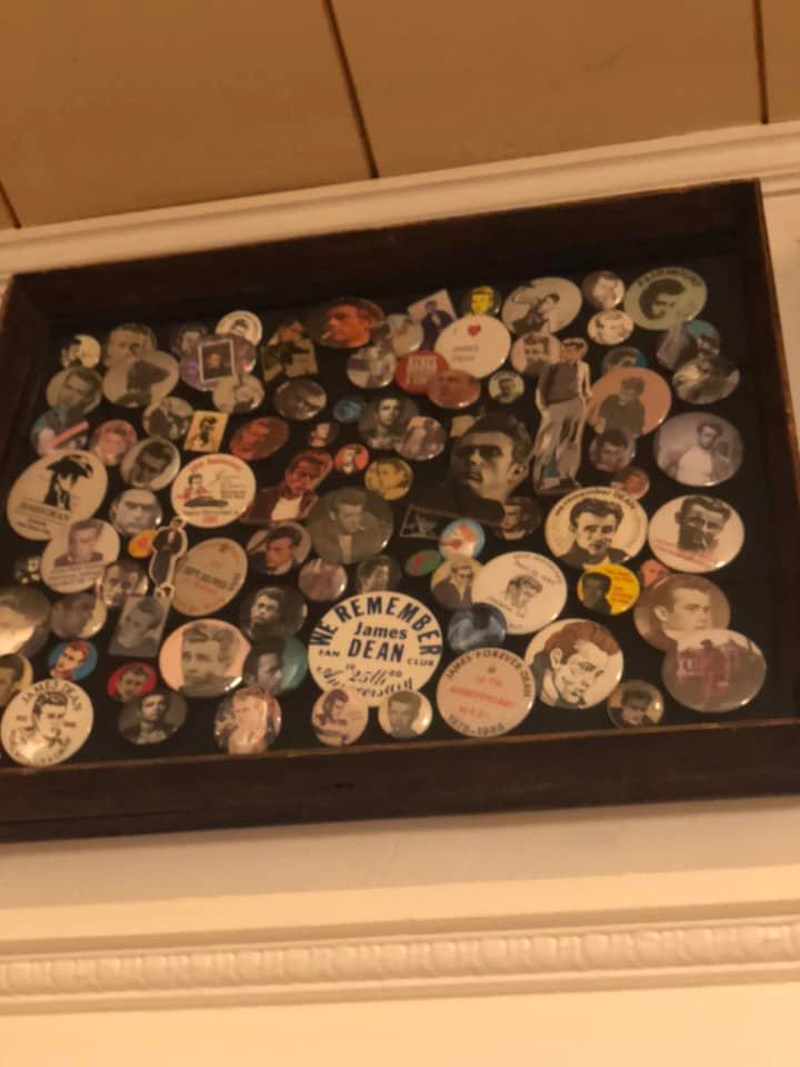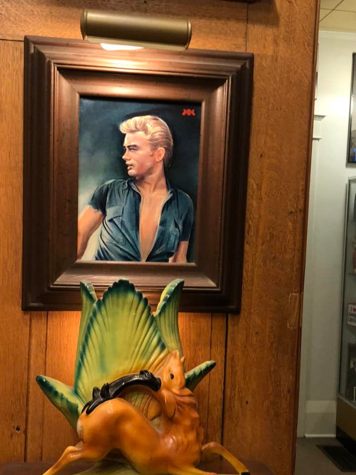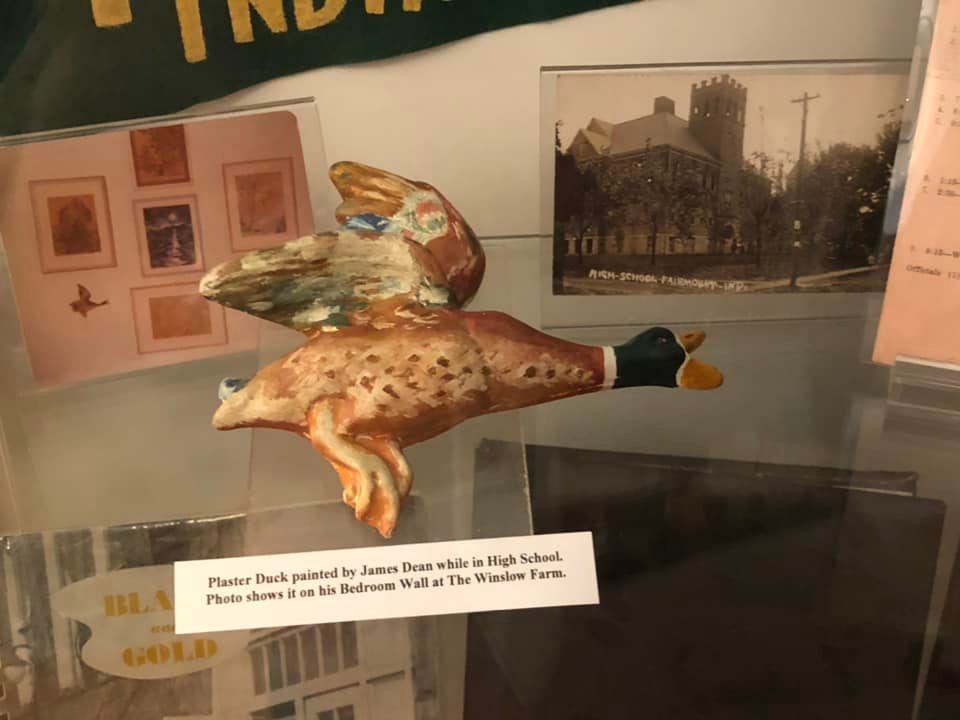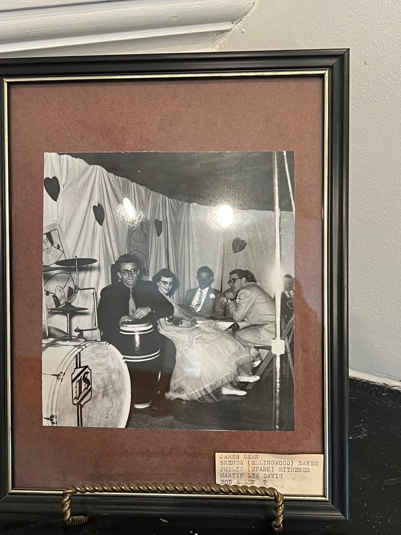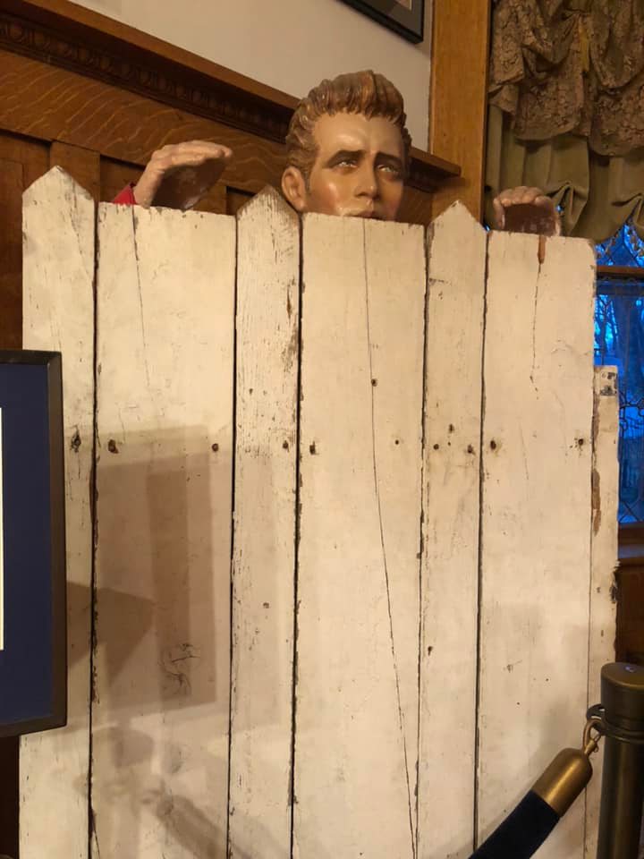 One of my favorite artifacts includes a picture of James Dean on a visit home, playing his conga drums in the middle of a pig pen.