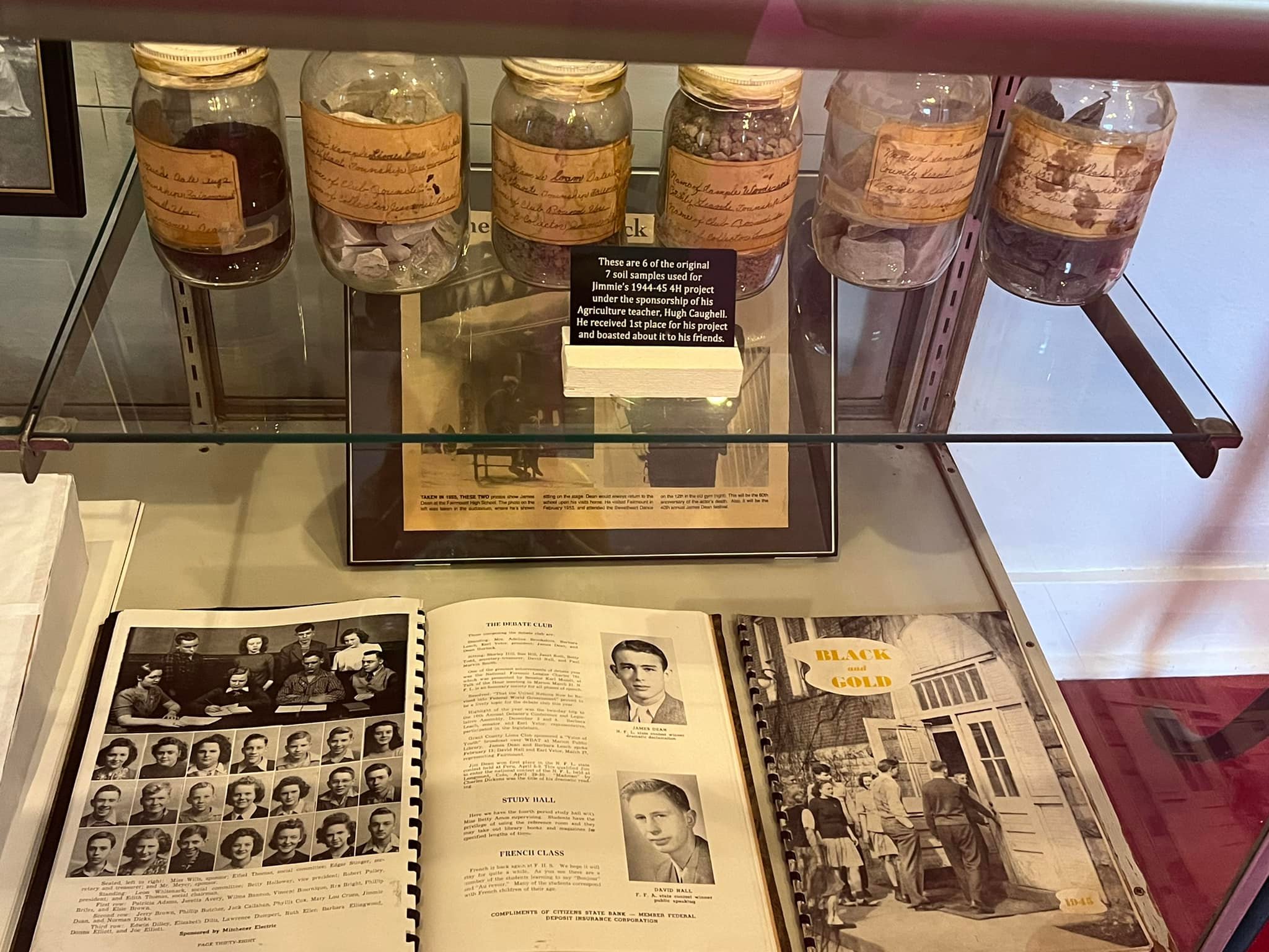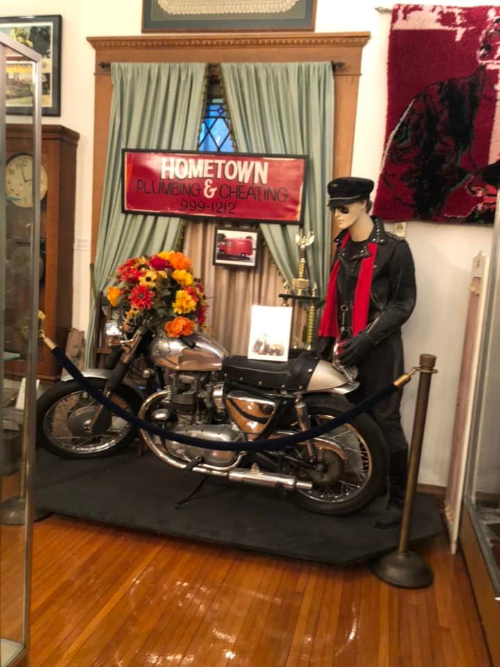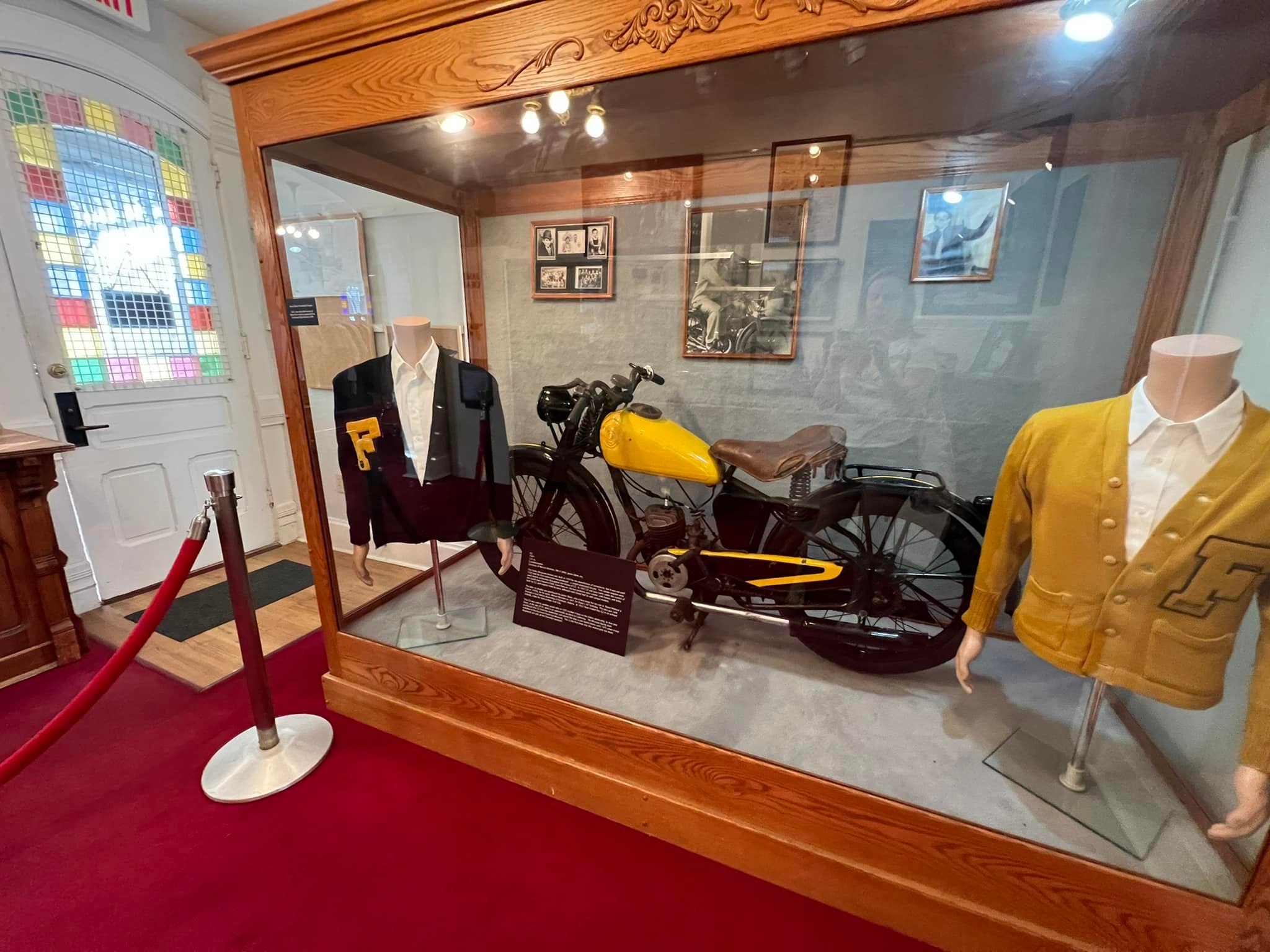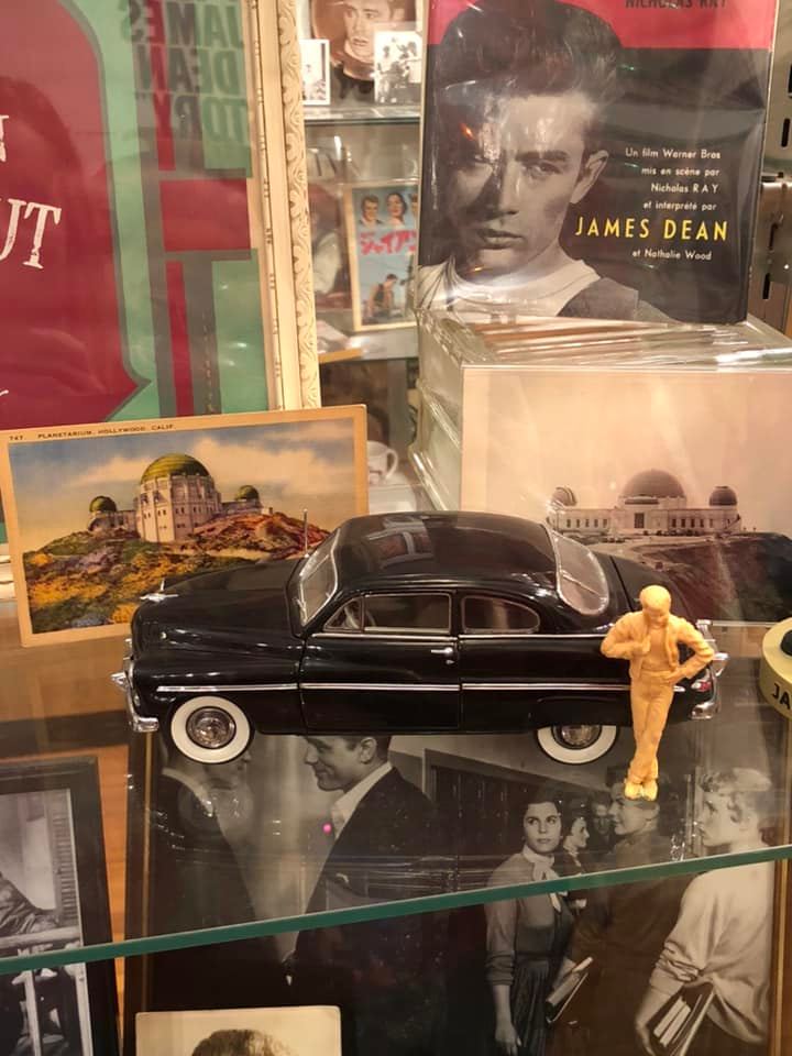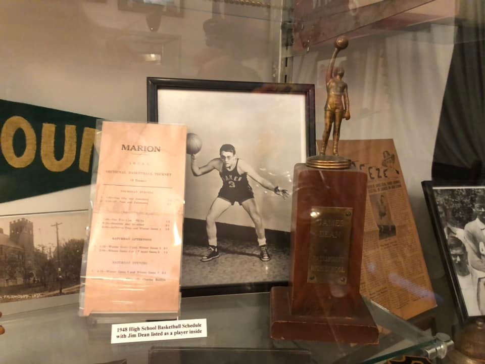 The James Dean Museum is located at 203 E. Washington St., Fairmount, Indiana. The staff members love to talk about James but also celebrate cartoonist Jim Davis, creator of the Garfield comics, who is also from Fairmount. The historical society contains many of his personal effects, literally scooped off of his desk by family members just after his death. They also house his motorcycles, and the story of one, in particular, was incredible. The historical society tracked Dean’s motorcycle to an owner in 1980s, who had no idea the motorcycle was owned by Dean at one point. This location has Dean’s homework, drawings, junior high basketball uniform, personal pictures, comb, conga drums, etc.