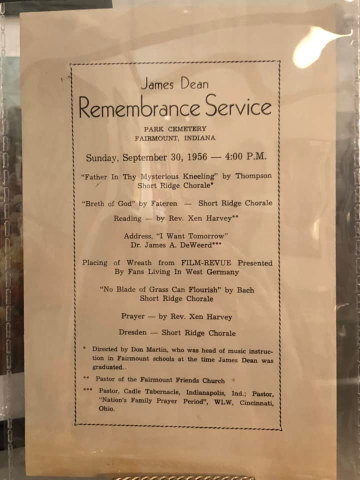 Dean’s funeral was held at the Friends Meeting House, located at 124 W. 1st St., Fairmount, Indiana.
