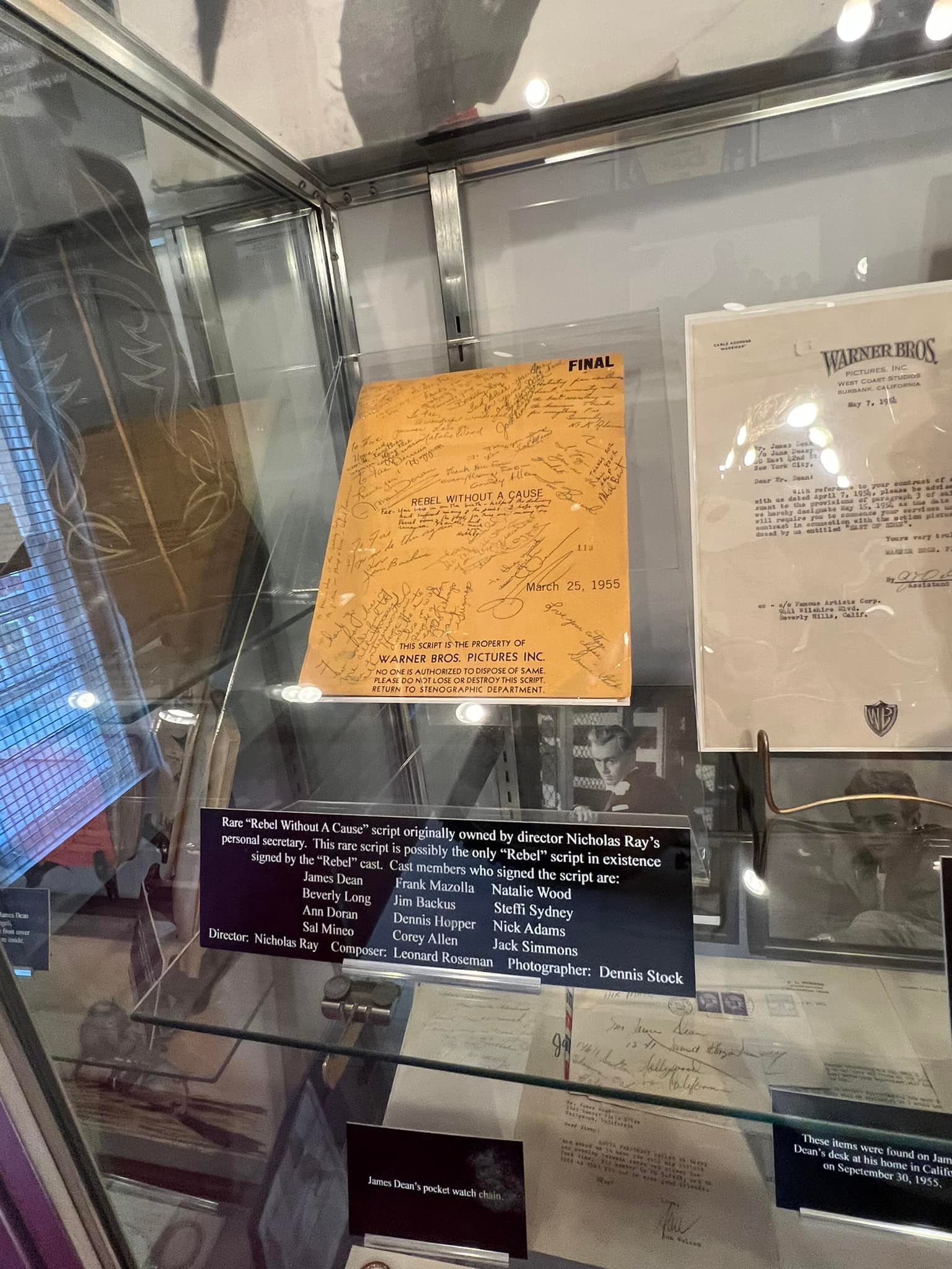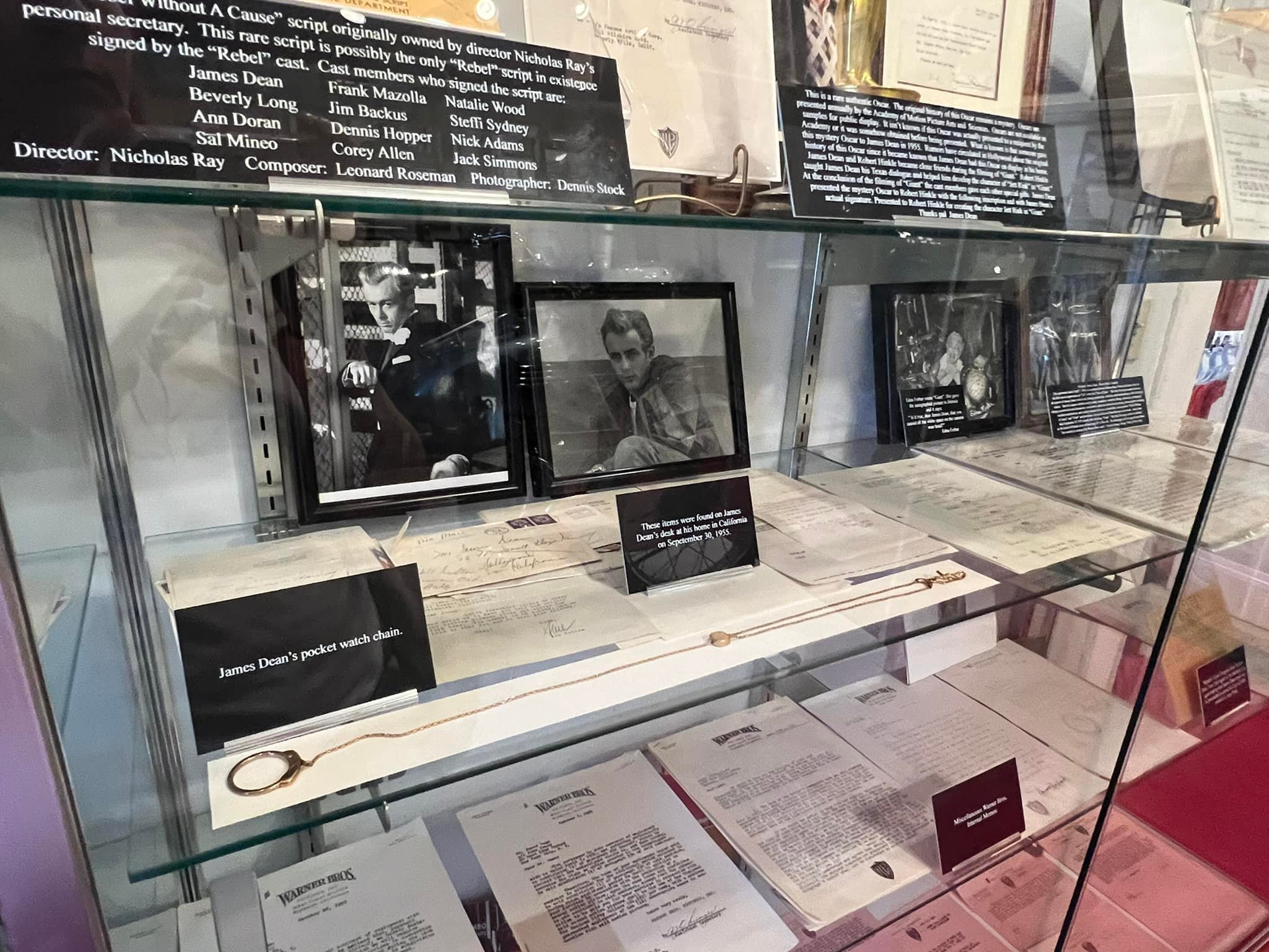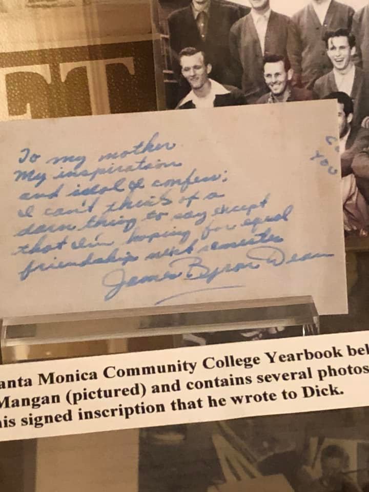They also had some photos featuring Dean visiting his old high school, which include him signing autographs and sitting in his former classroom. Additionally, they have the initial ticket he was issued on the day he passed.