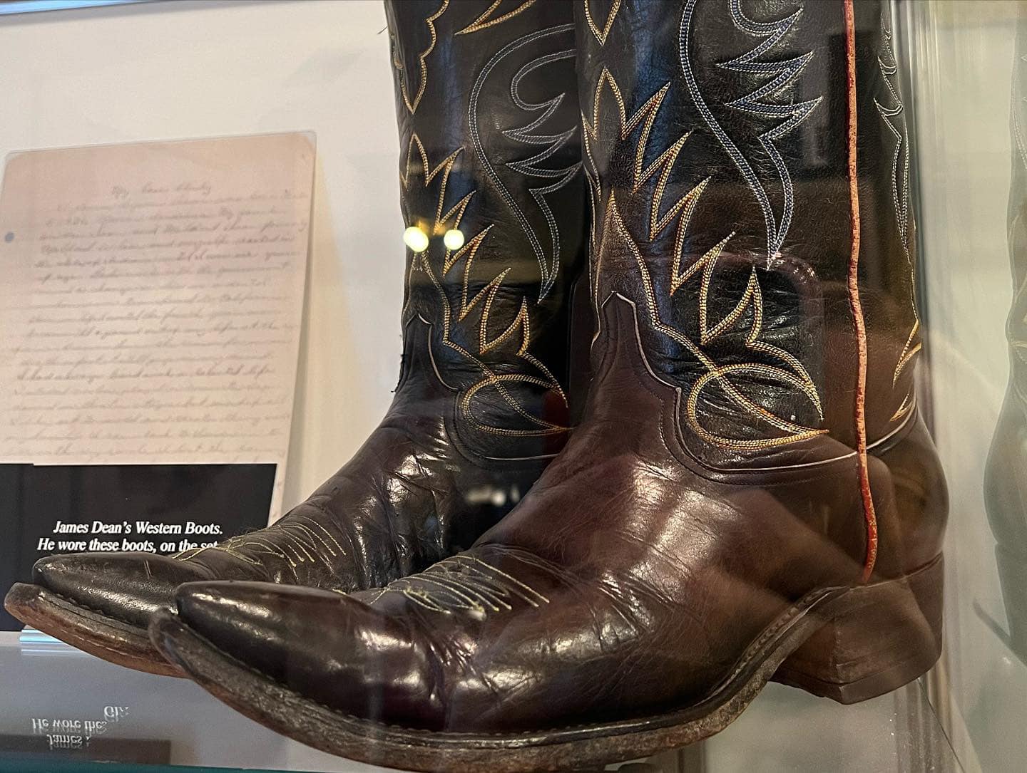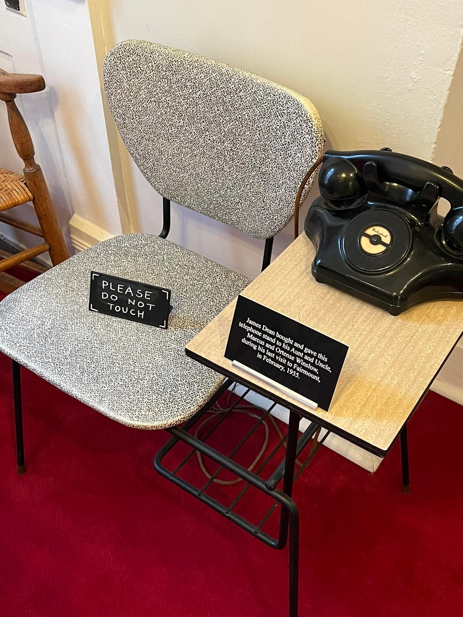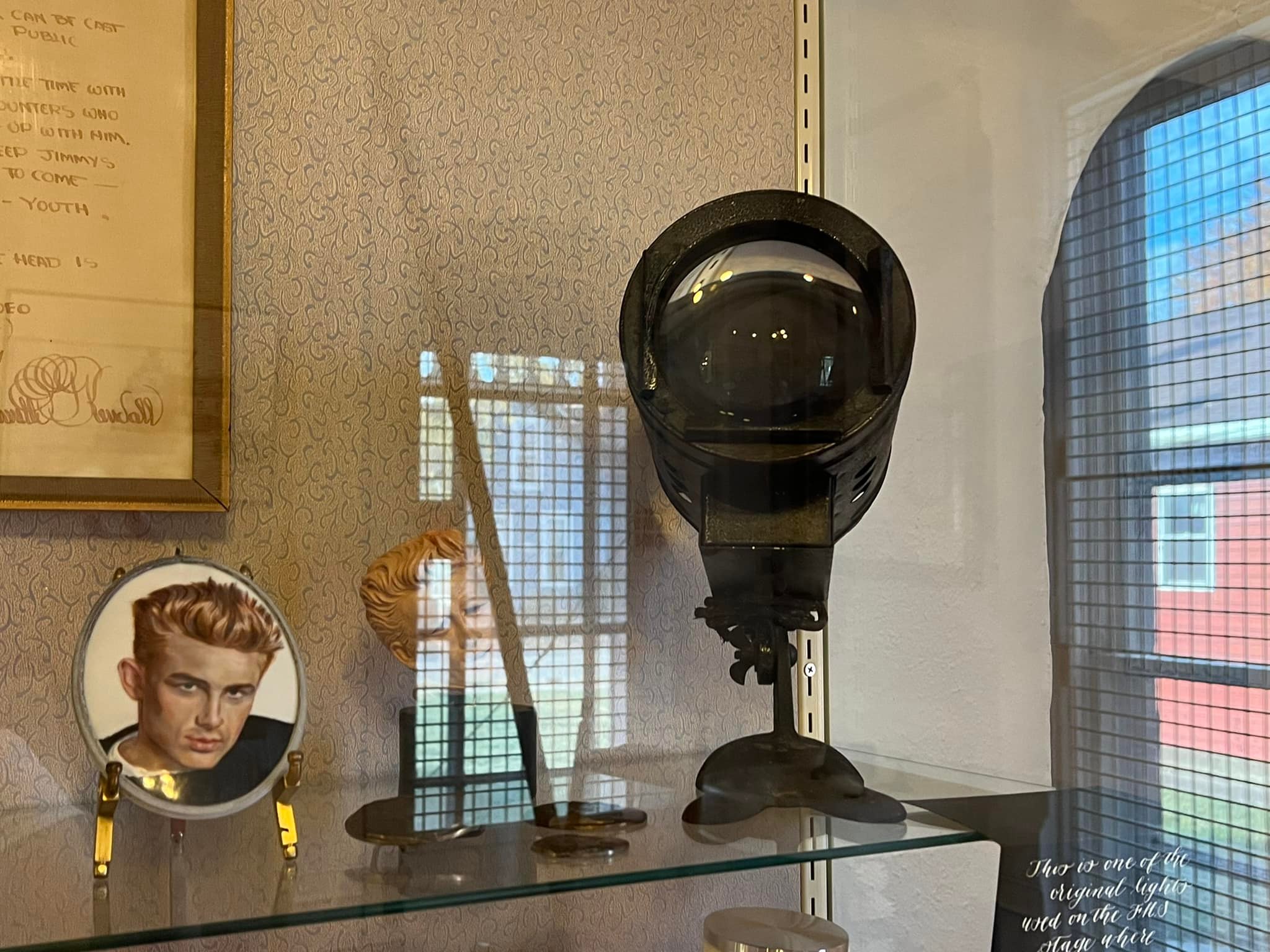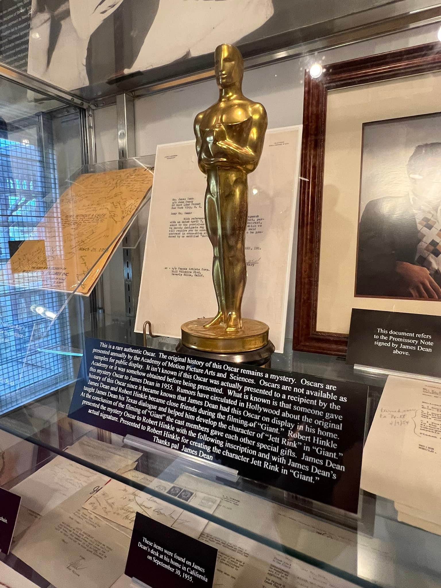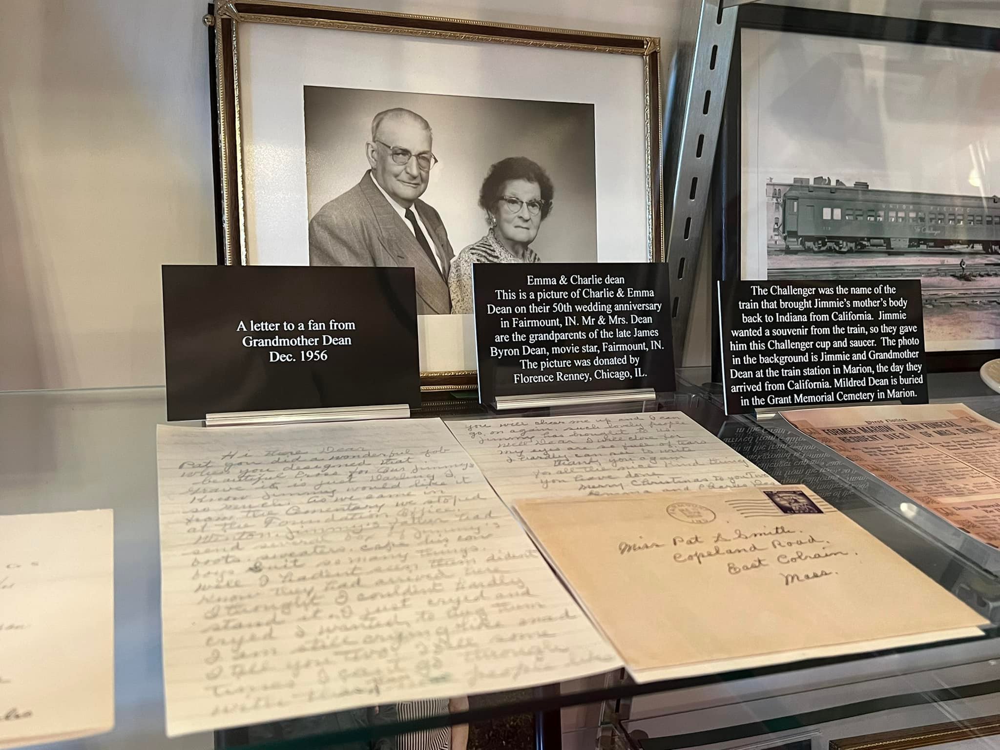 Update, 2012: Years after my first trip to Fairmount, the Indiana State Museum honored Dean with an exhibit. Here are some shots from that display. My favorite item is the East of Eden suit; however, you’ll also find the script from Giant, the car in which Dean drove his prom date, his middle school basketball uniform, and more.