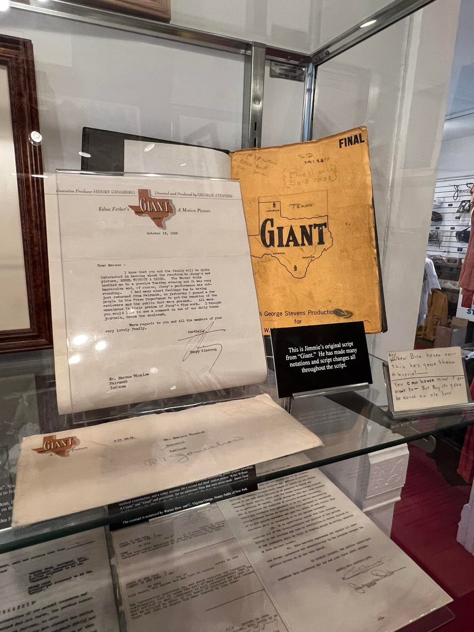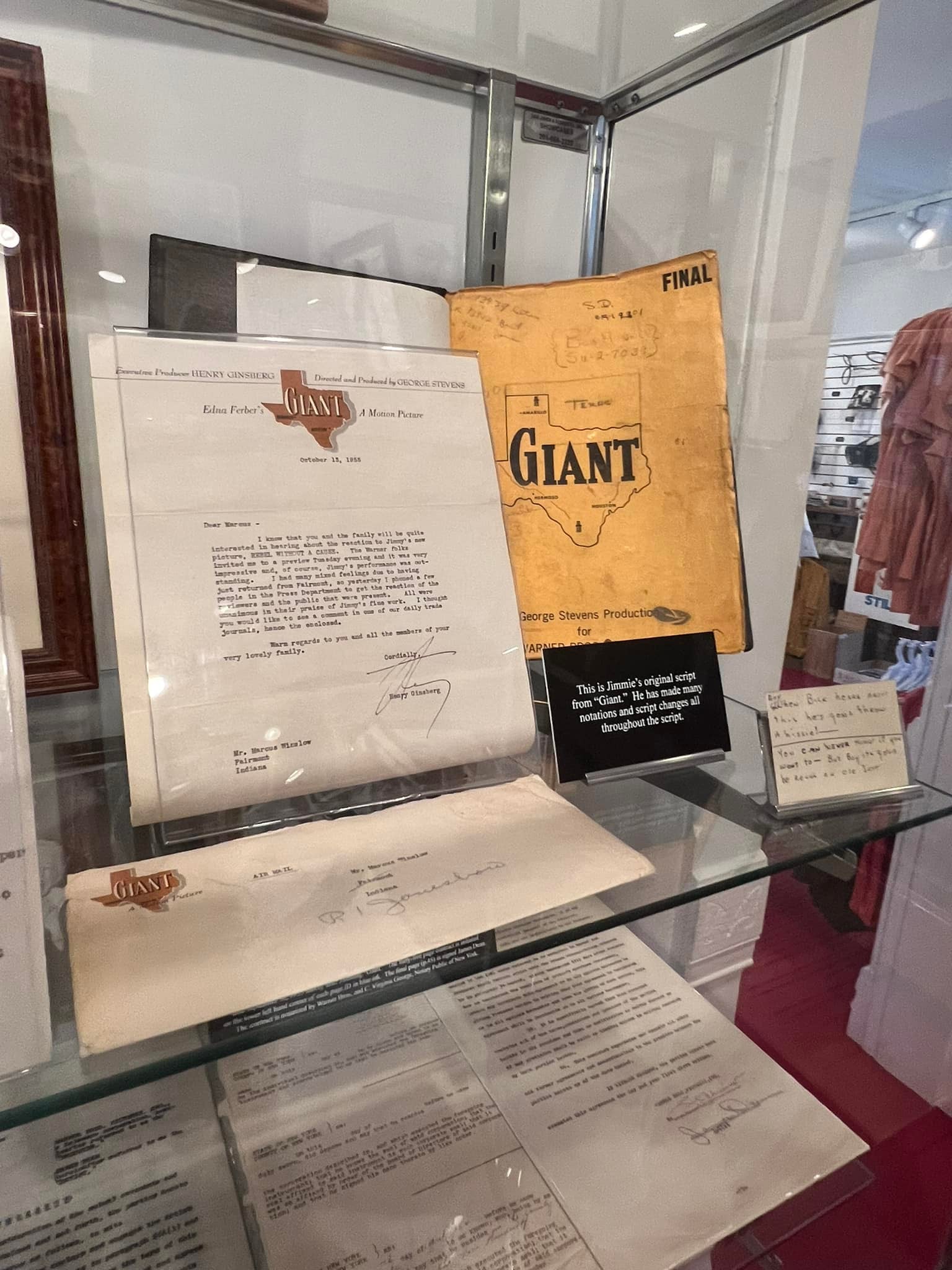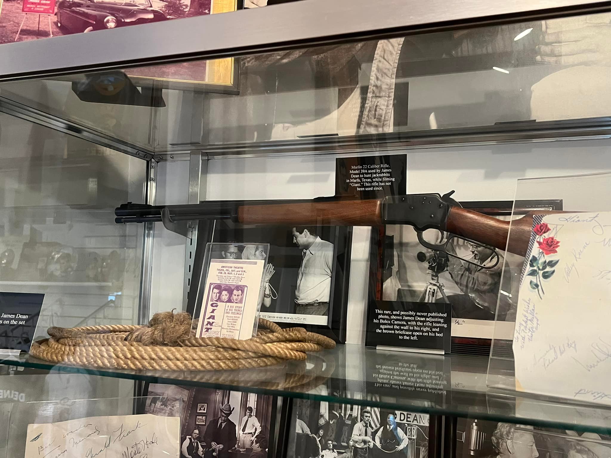 Giant was partly filmed in Marfa, Texas, which now holds large plywood tributes to its stars, including Dean. They can be spotted seven miles west of Marfa, on the north portion of US Hwy. 90.