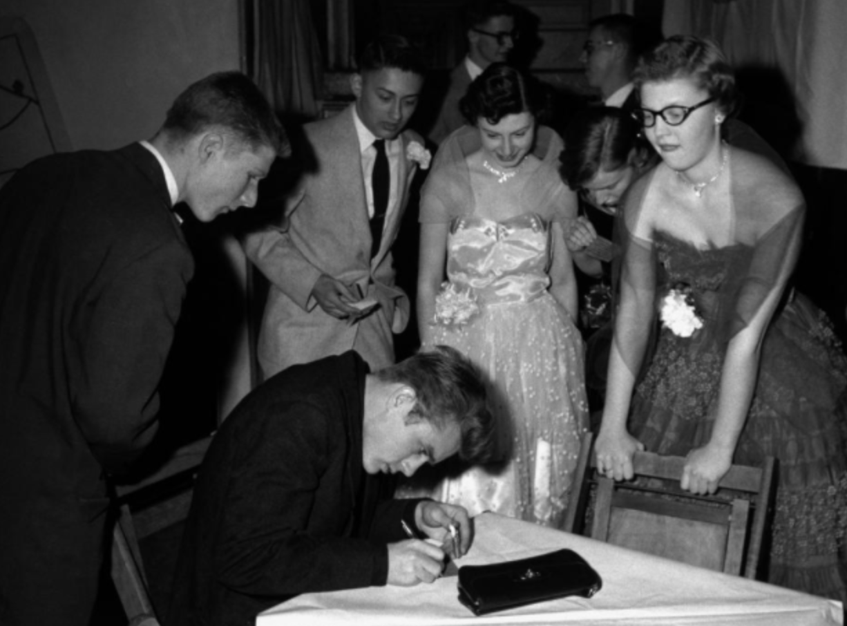 Dean’s next major role was in Rebel Without a Cause (1955), which was particularly a hit among teenagers. In an effort to avoid being typecast as a character depicting teenage angst, Dean portrayed Texas ranch hand Jett Rink in Giant (1956). Giant was ultimately his last film, posthumously released in 1956. Dean’s second posthumous Academy Award nomination for Best Actor in a Leading Role was for his work in Giant. At the time of his passing, Dean was slated to star in Somebody Up There Likes Me (1956).