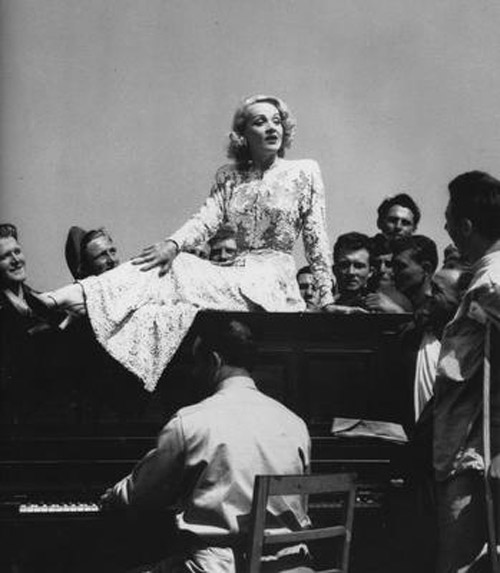 Marlene Dietrich + USO tour + white illusion gown